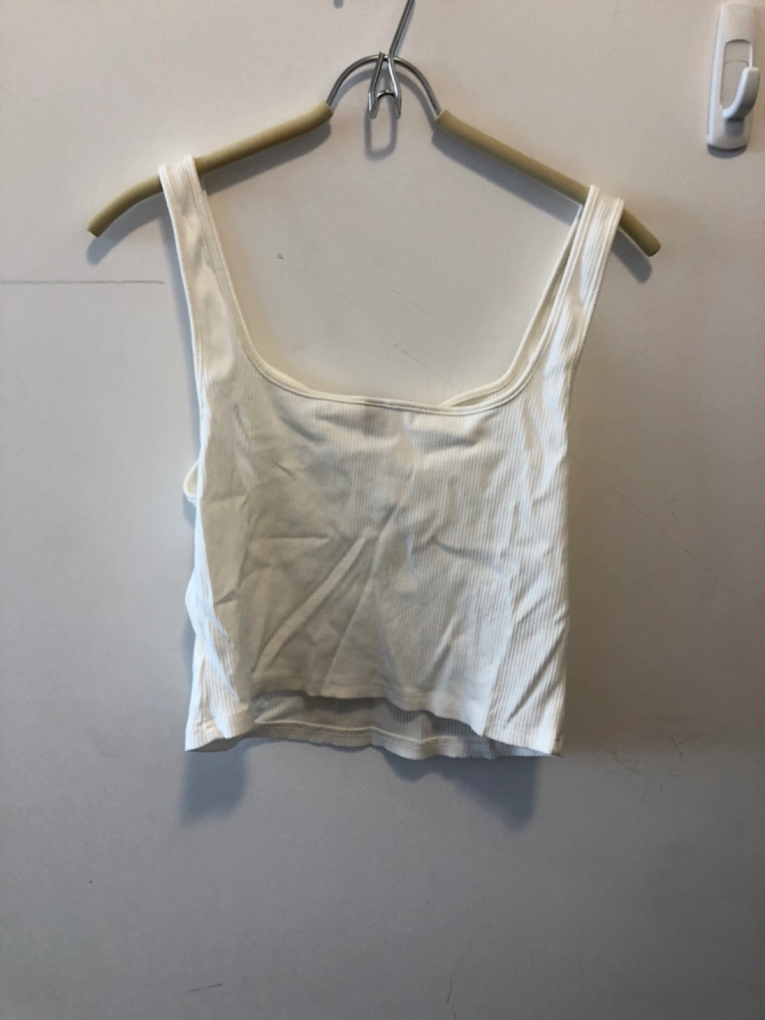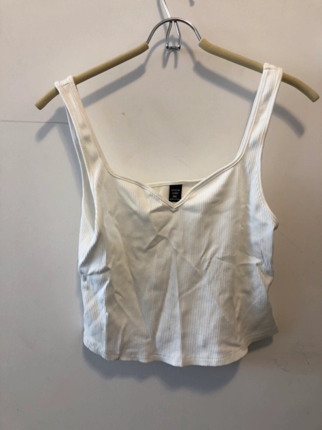 White ribbed crop tank top. Square neckline. Size XL. Made in China.