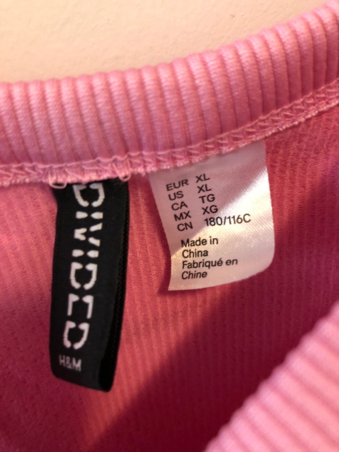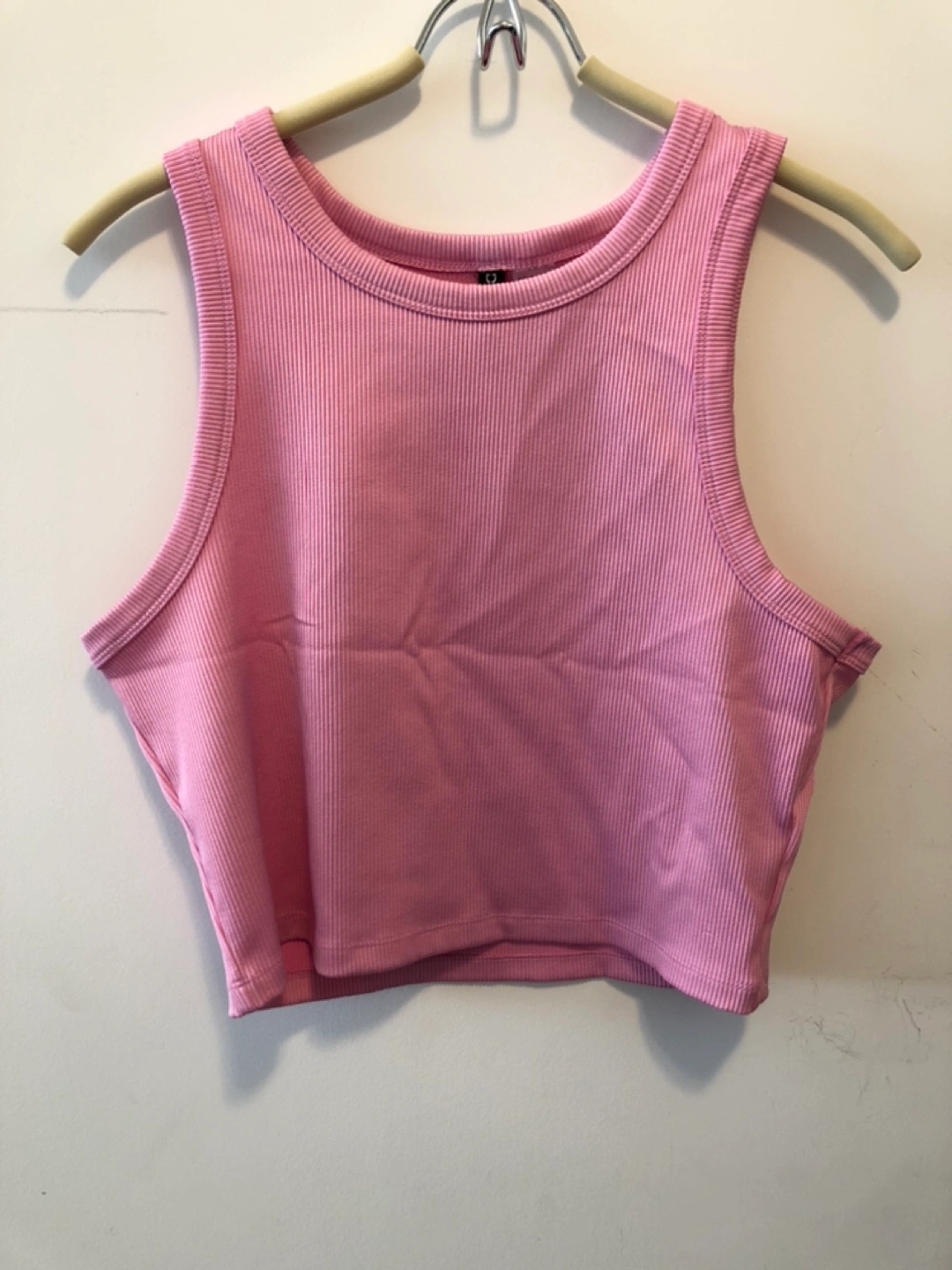 Pink ribbed crop tank top. Size XL. Great for layering or wearing on its own. Made in China.