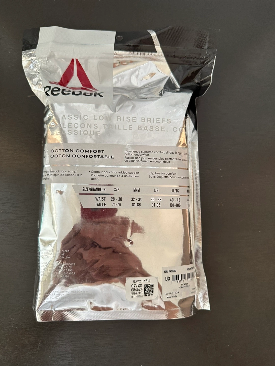 New Reebok men's underwear. Pack of 4 classic low-rise briefs. Cotton comfort. Large size. Price is firm and non-negotiable. Pick up near Scarborough Town Centre.