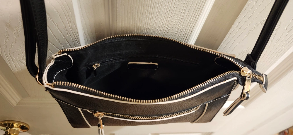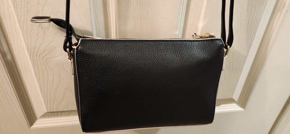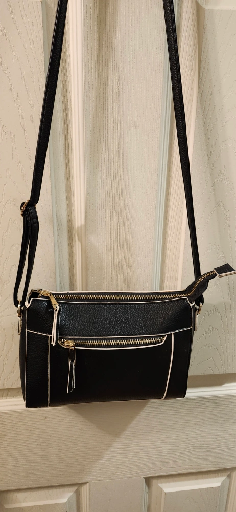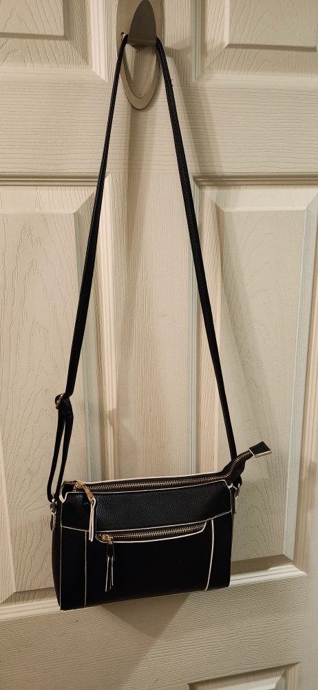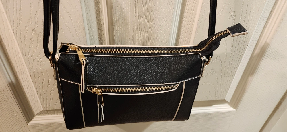 Small black crossbody bag. Features gold zippers and an adjustable strap. Interior pocket. Excellent condition. price only cash only pickup no delivery. Meet up on 801 O'Connor drive outside TD bank door.