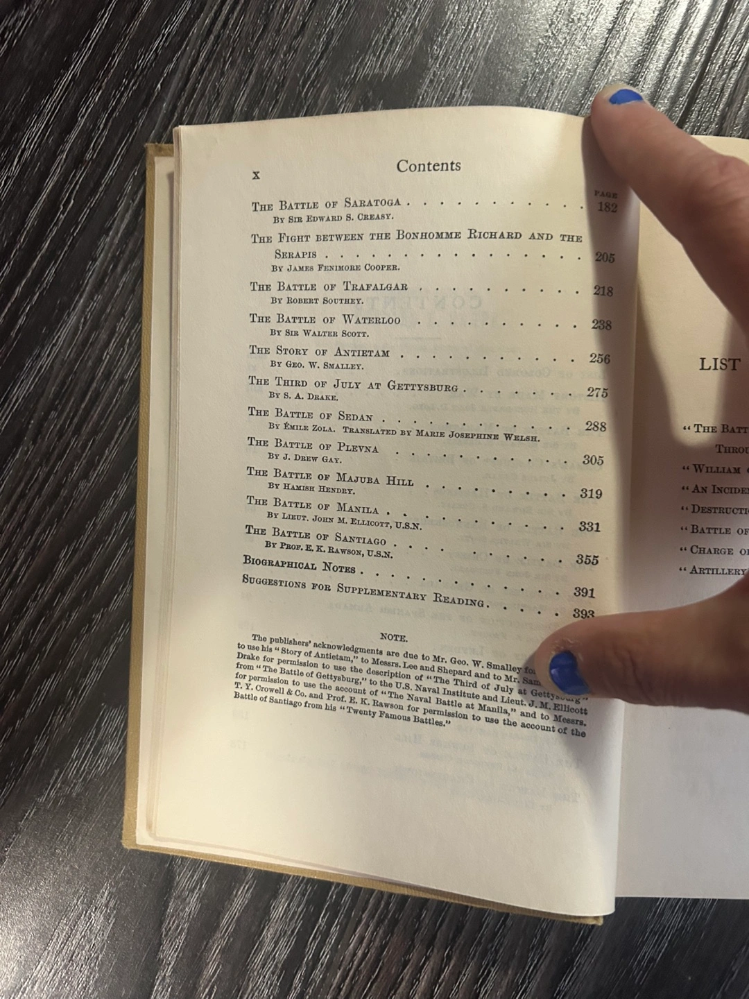 Antique children's book. Features various famous battles throughout history. Illustrations included. Published in 1943 by Auxiliary Educational League, Chicago.