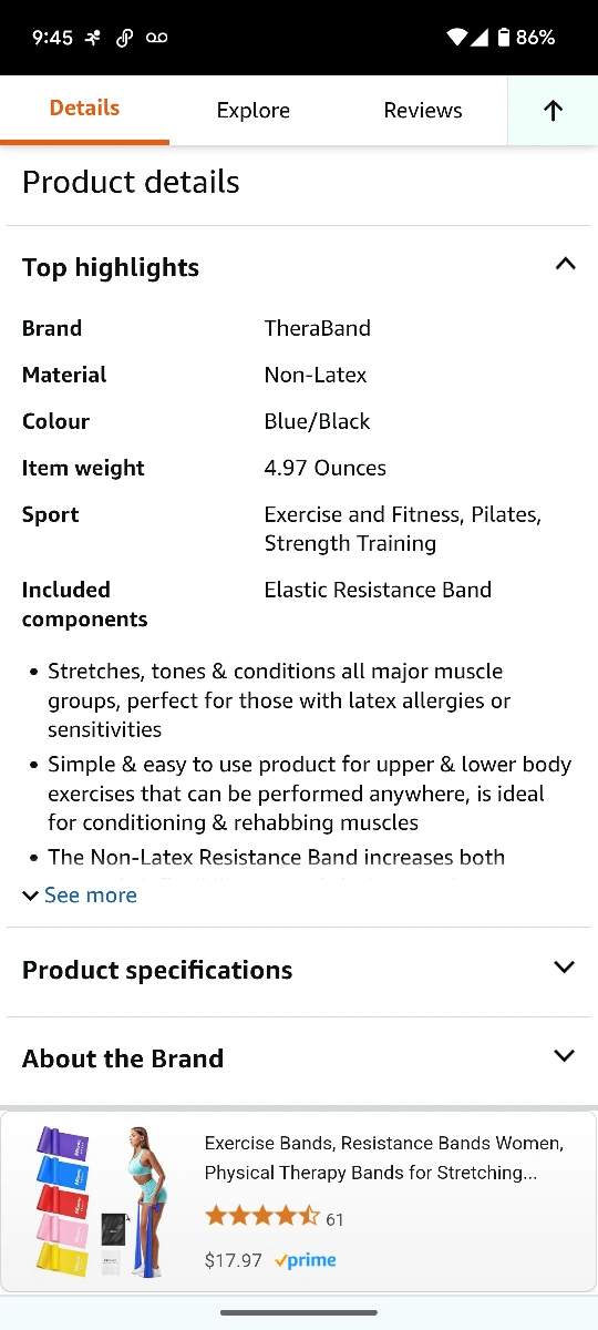 TheraBand Resistance Bands Set, Non-Latex, Blue/Black