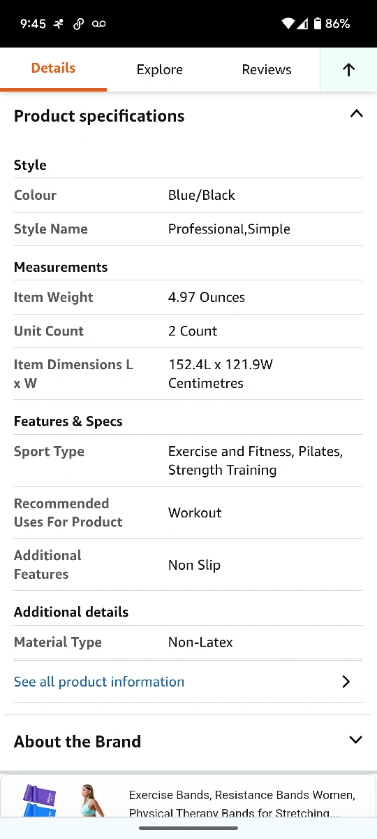 Professional elastic resistance bands. Ideal for upper & lower body exercise, strength training, Pilates, and physical therapy. Two bands included. Non-slip. Stretches, tones, and conditions all major muscle groups.