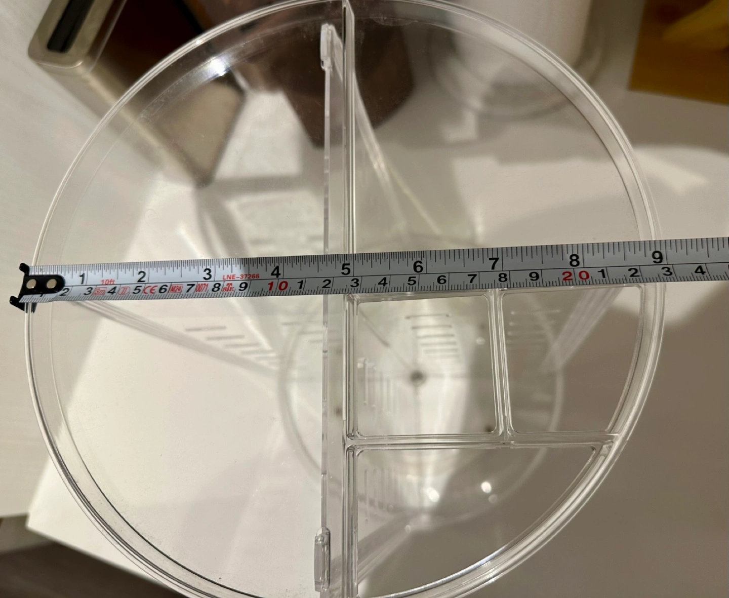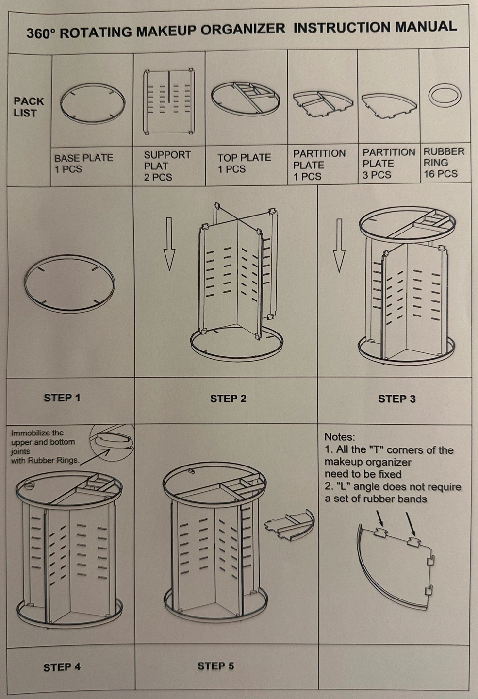 Clear acrylic makeup organizer. Rotating design. Includes all parts and instructions. Easy assembly. 16 rubber rings included. Measurements are in the last 2 pictures. Only available for pick up at East Harbourfront.