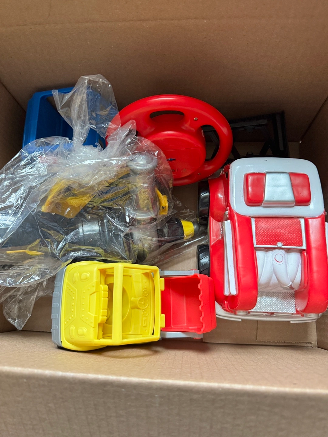 Assortment of toys. Remote control fire truck, glow tacks with 2 cars has lights and construction play set. Pick up Bradford. $10 for everything. GUC.
