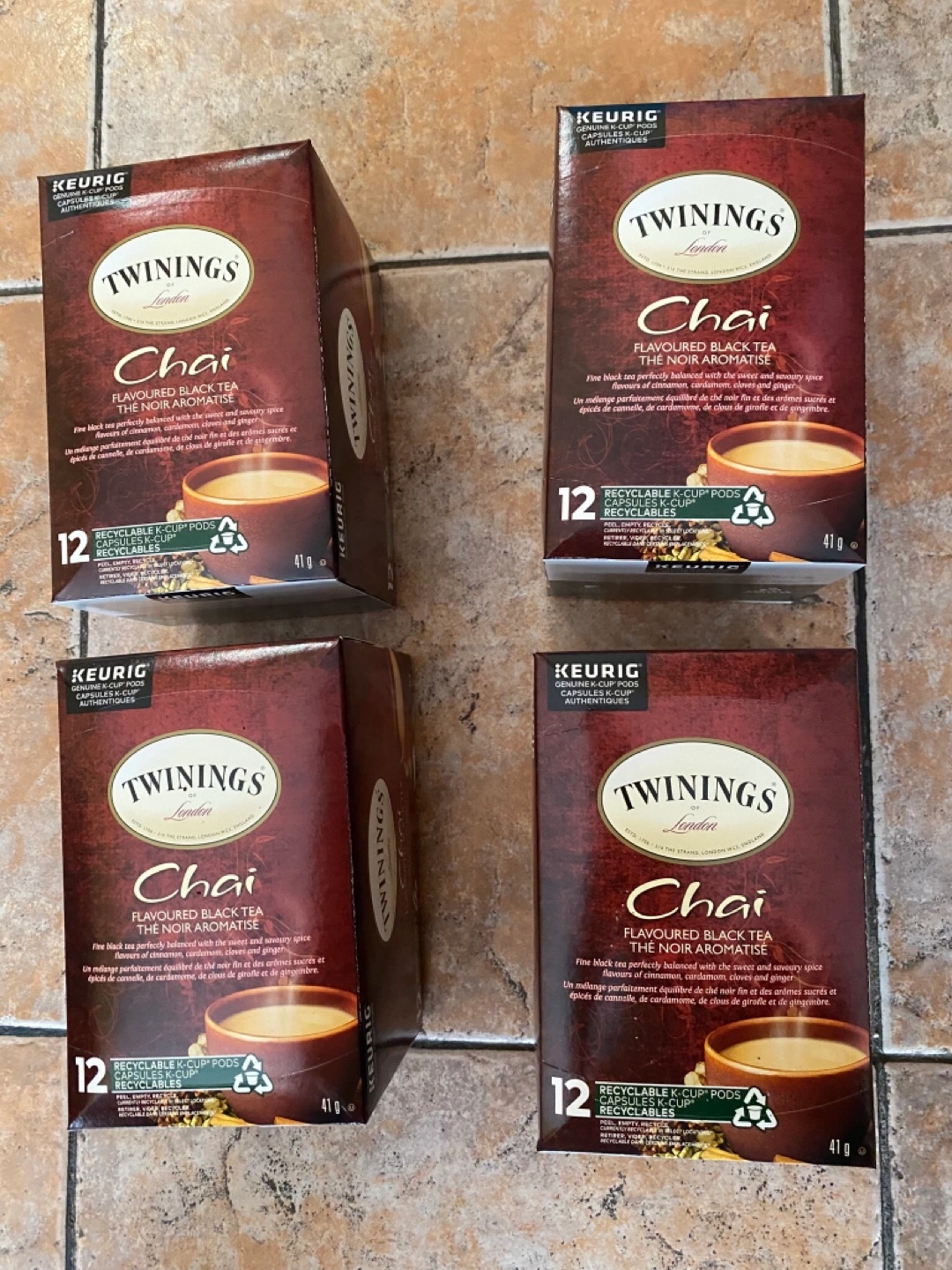 Four boxes of Twinings Chai Flavoured Black Tea K-Cup pods. 12 pods per box. Best before 23 MAR 2025. (Expired so giving away free for someone who wants it free ) (pick it up Brampton or Mississauga or Vaughn or etobicoke at specific time