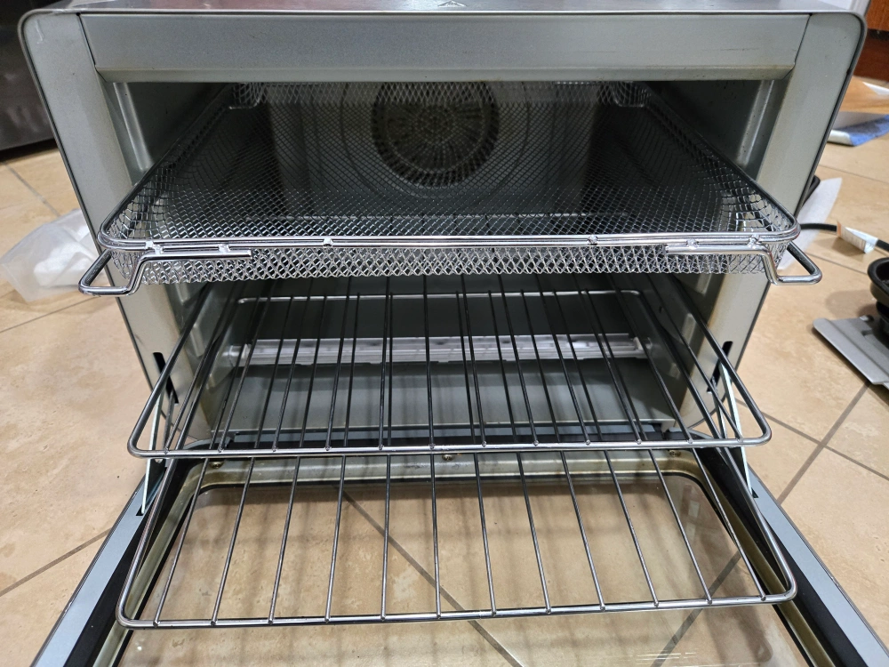 Functions - air fry, air roast, bake, whole roast, broil, toast, bagel, dehydrate, reheat, and pizza.