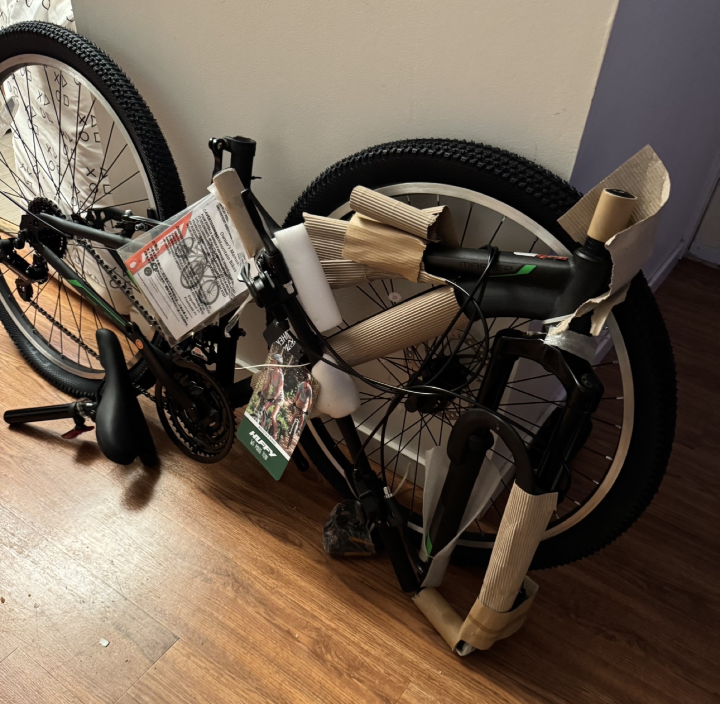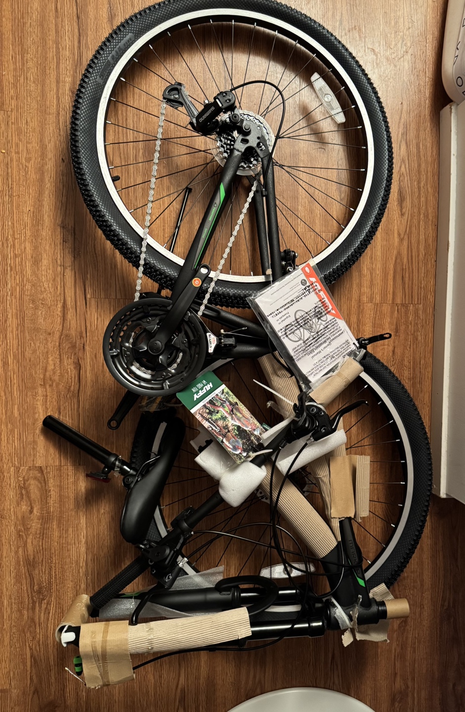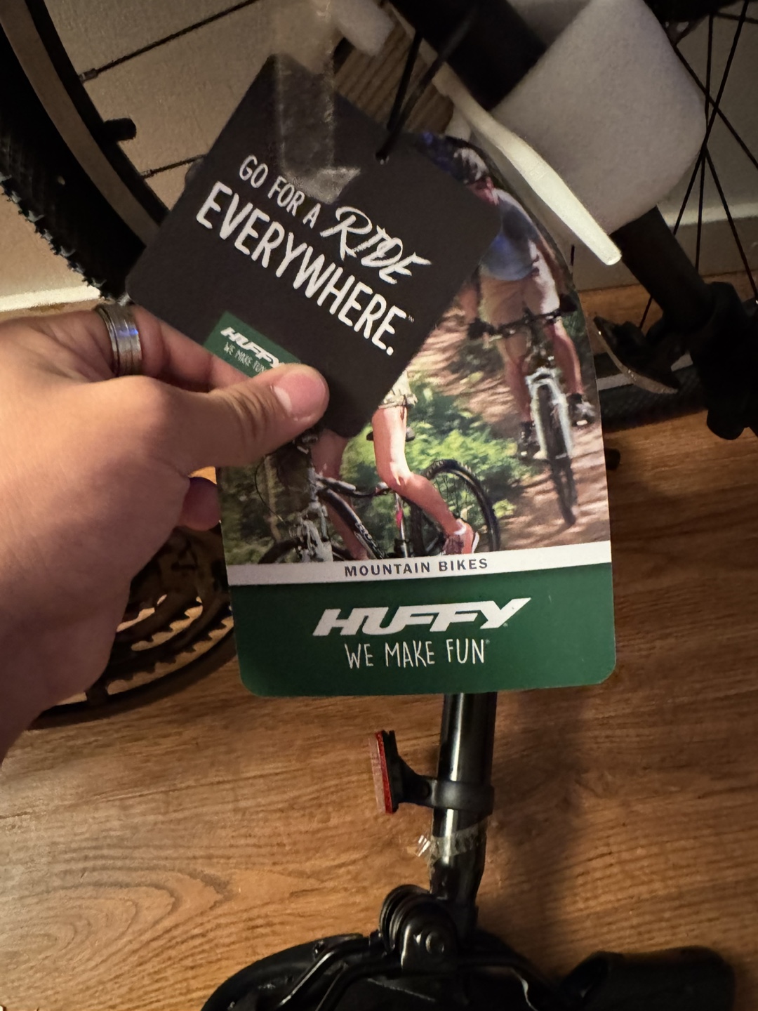 New Huffy mountain bike, Partially assembled. Great for trails and off-road adventures.