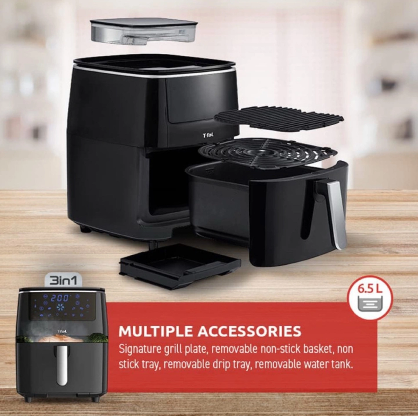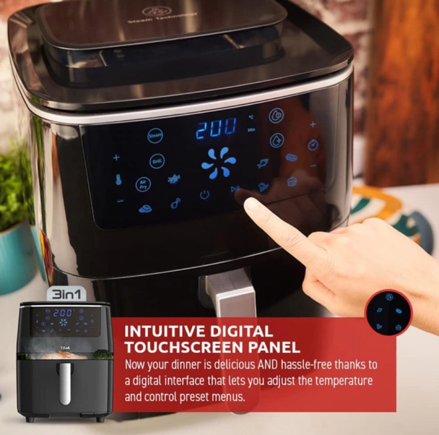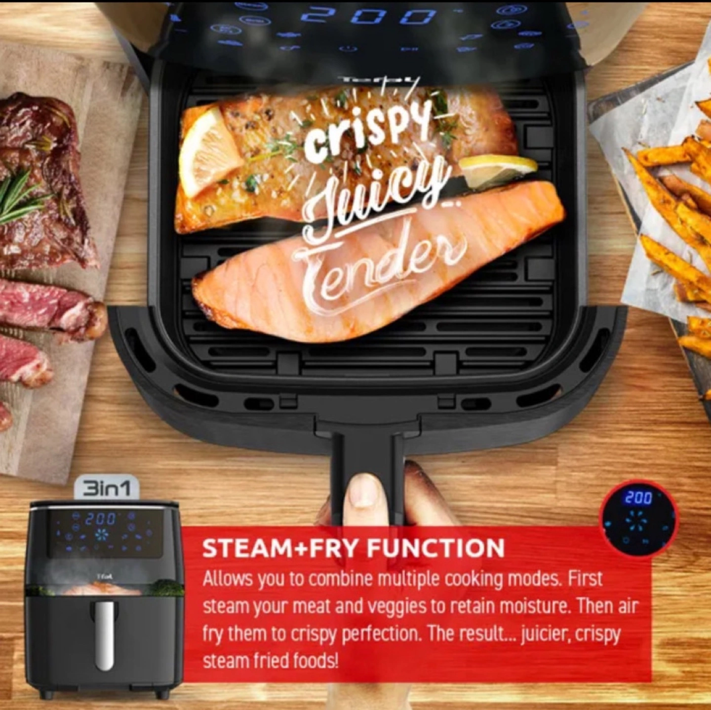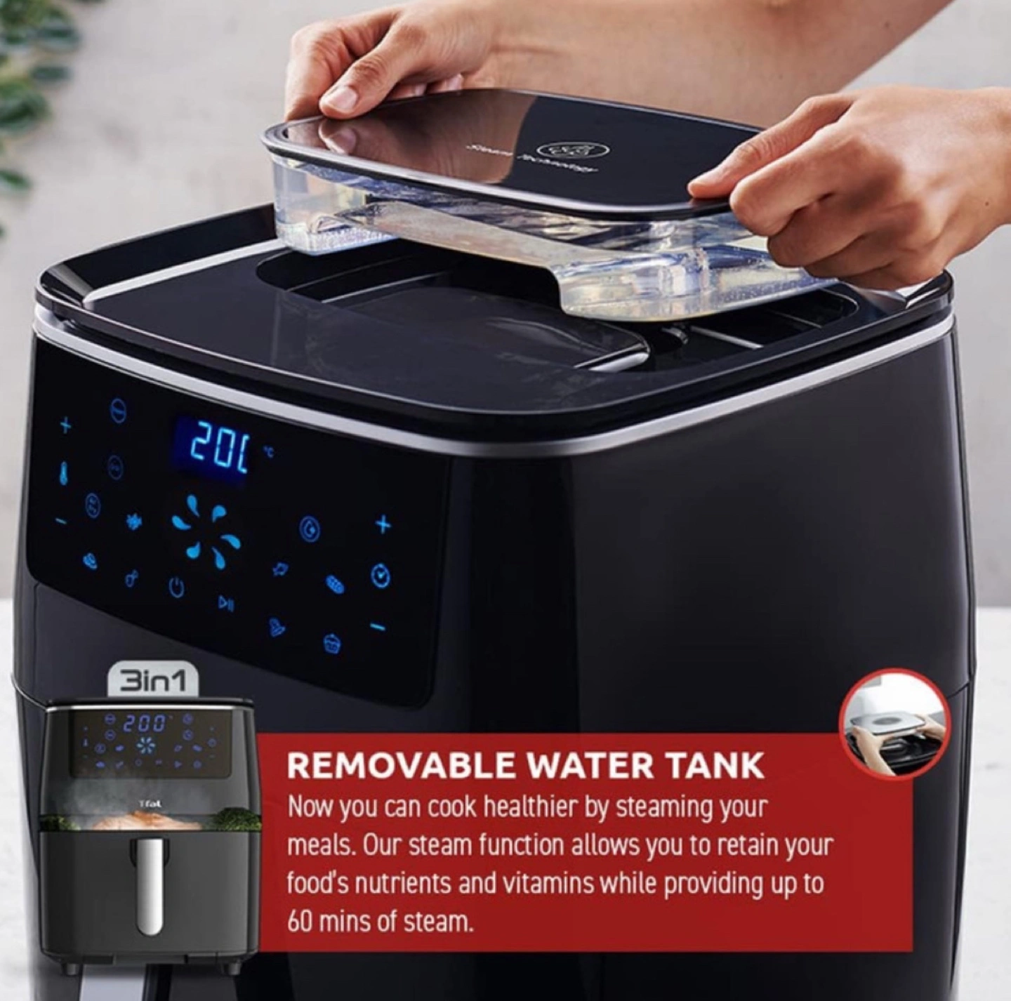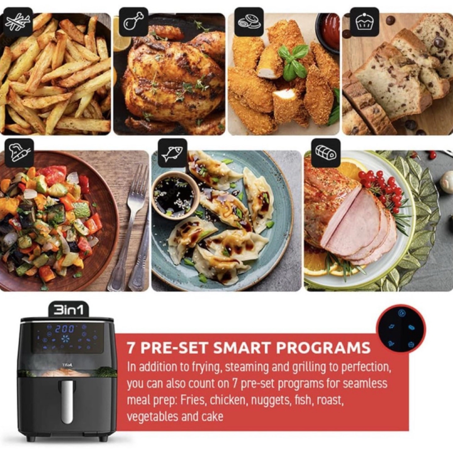 T-Fal Easy Fry Grill & Steam 3in1 XXL Air Fryer, 6.9Qt (6.5L) Low Oil Healthy XXL Digital Air Fryer, 7 Programmable functions with Grill Plate and Steam Functionality, 1750W, FW201850