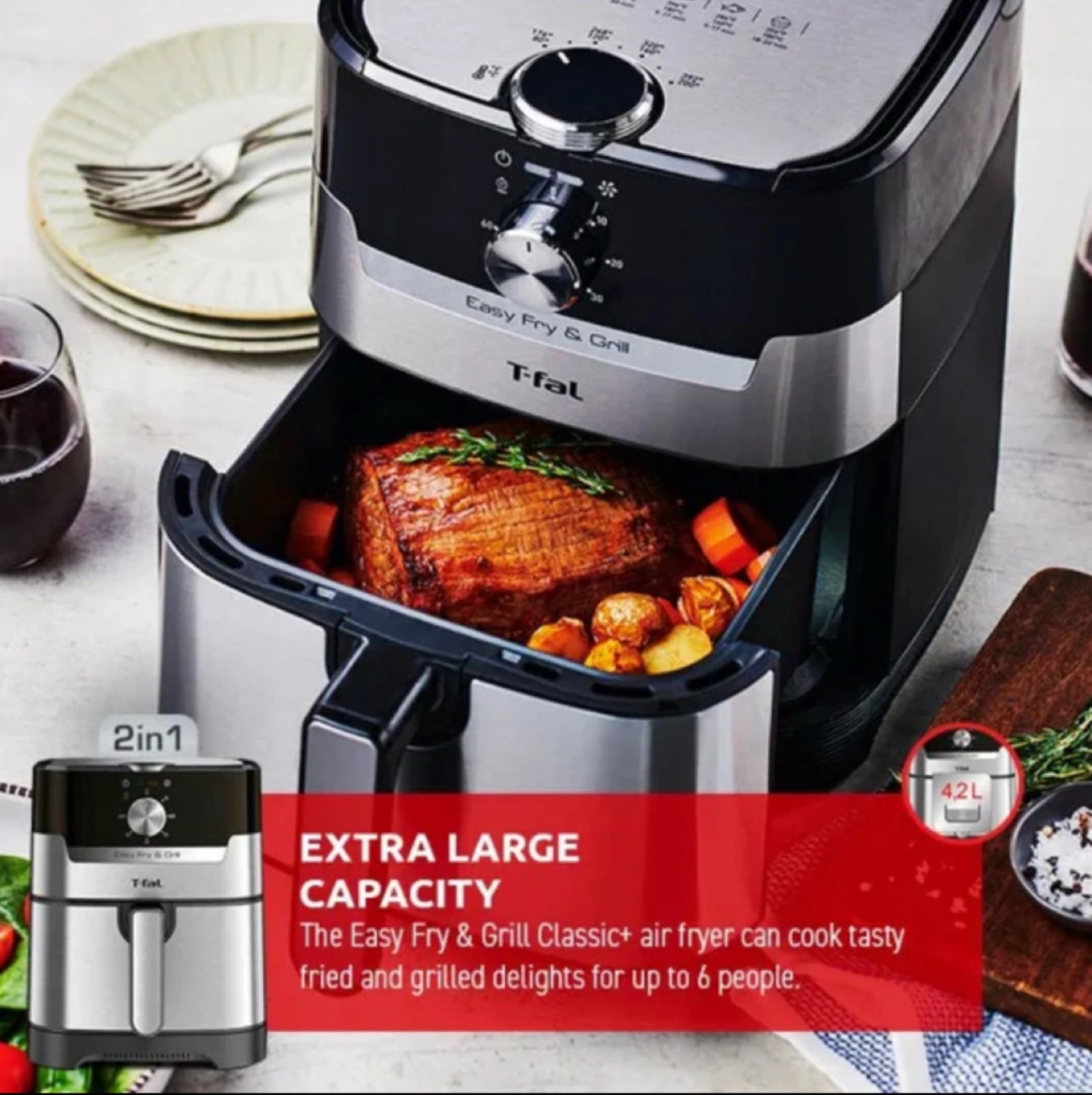 Extra Large Meals: 4.2L capacity (1.2kg of food) is perfect for family dinners, and gatherings up to 6 people.