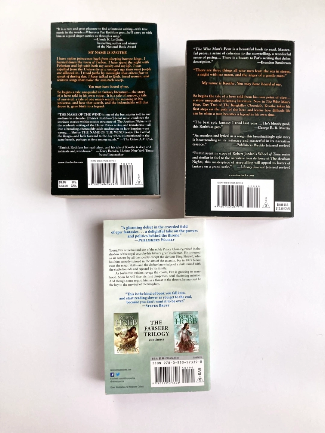 705The Name of the Wind - Rothfuss The Wise Man’s Fear - Rothfuss Assassin’s Apprentice - Hobb If you buy 2, get the third free If nobody buys by mid-Feb, I’ll donate them to the library. Also open to trades. I’ve never gotten around to reading these books and I can’t keep them around. They’re in near-perfect quality because I haven’t read them. Hopefully they’ll find a good home! Pickup near Finch/Yonge or King/Dufferin.