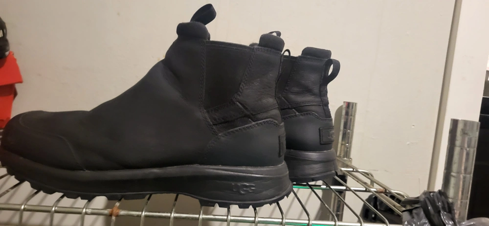 Pre-owned men's UGG Emmett Chelsea Weather boots. Black leather. Good condition.