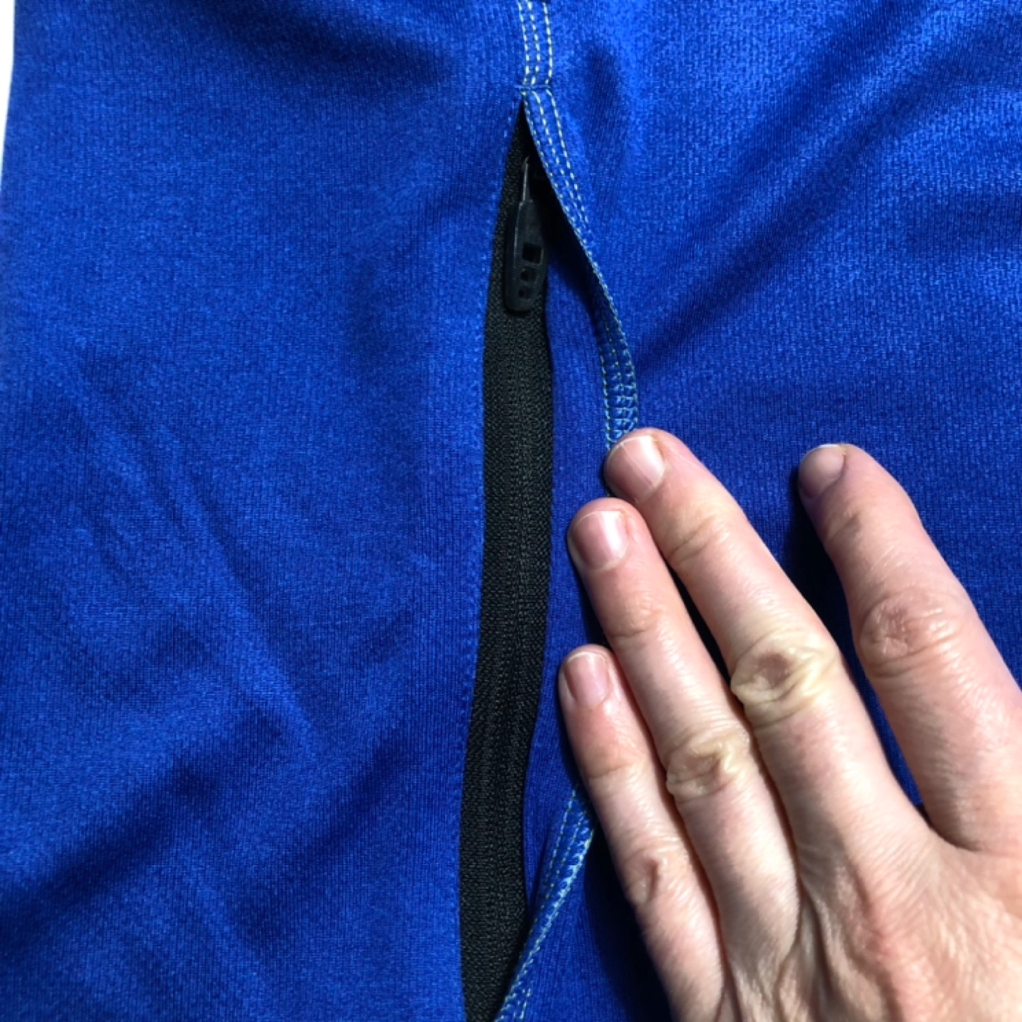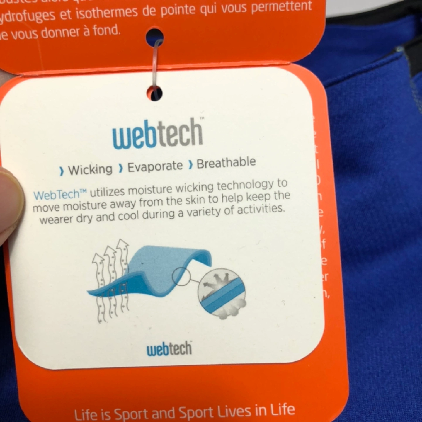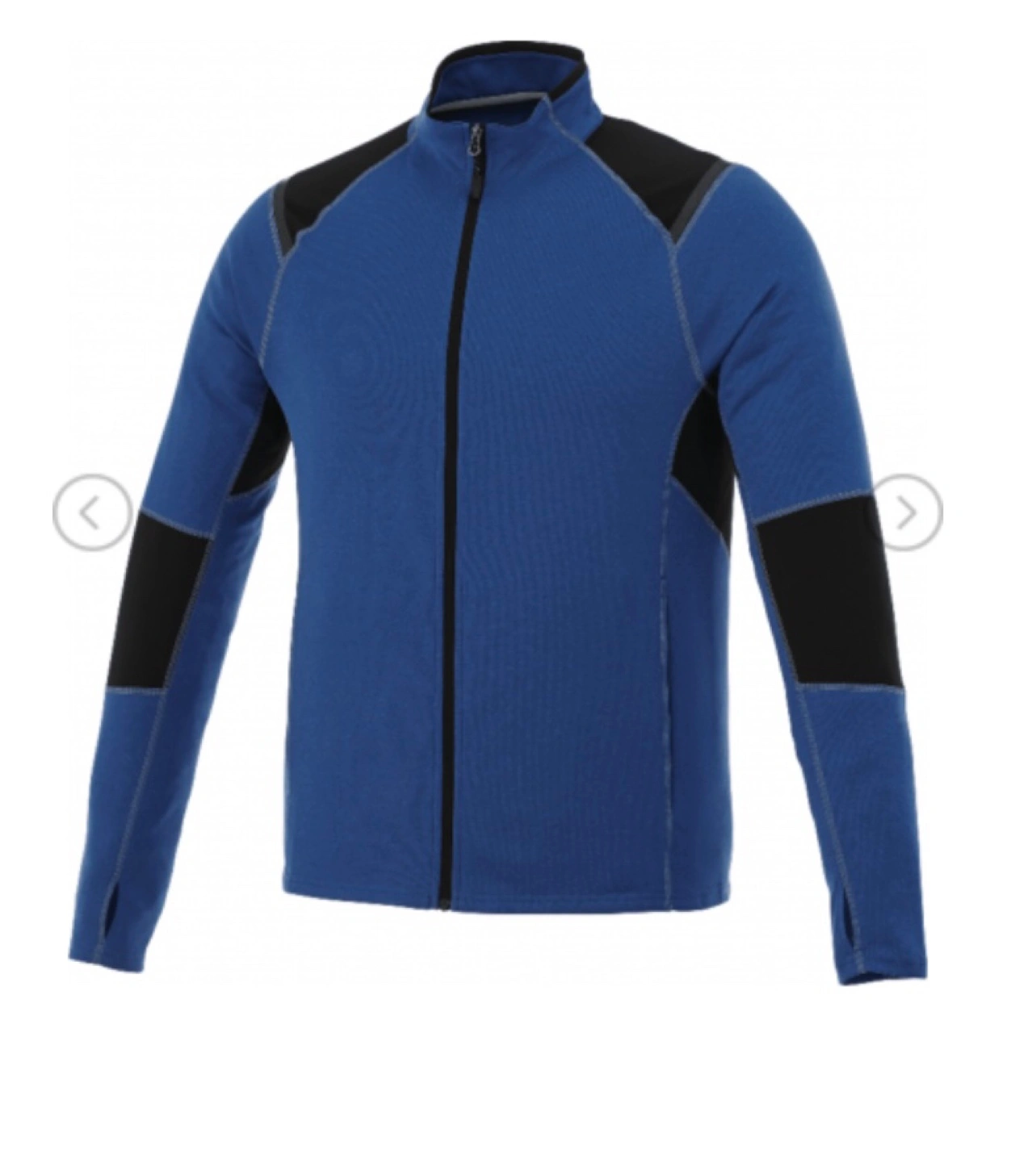 Royal Heather Blue with black accents. WebTech moisture-wicking technology. Breathable 100% micro polyester fabric. Two zippered side pockets, sleeve cuffs with thumb exits, contrast stitching and contemporary modern fit.