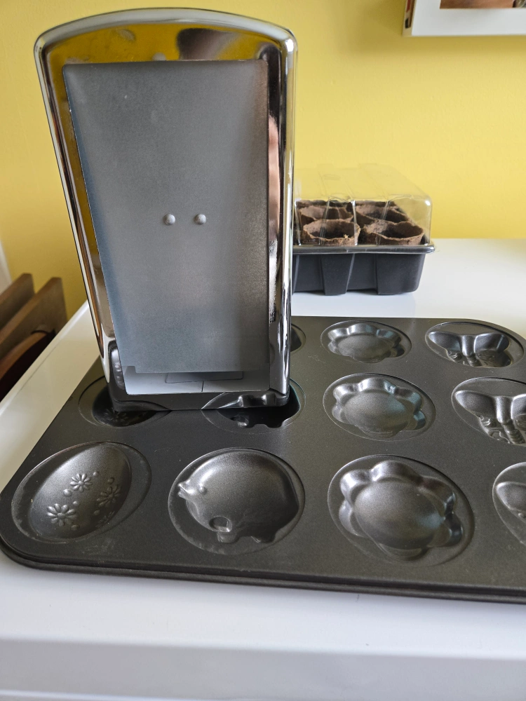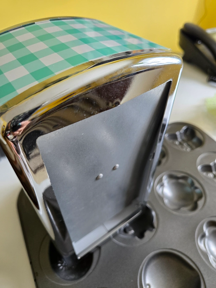 Metal napkin holder. Teal and white gingham design. Chrome accents. Perfect for adding a touch of vintage charm to your kitchen or dining area. Take both for $3.00