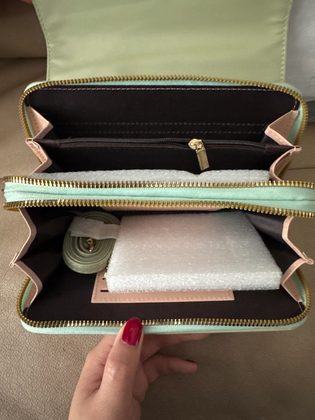 Both brand new bags, same style. Only opened green one to take photos. Has multiple sections and card holders. Comes with a strap as well. $15 each