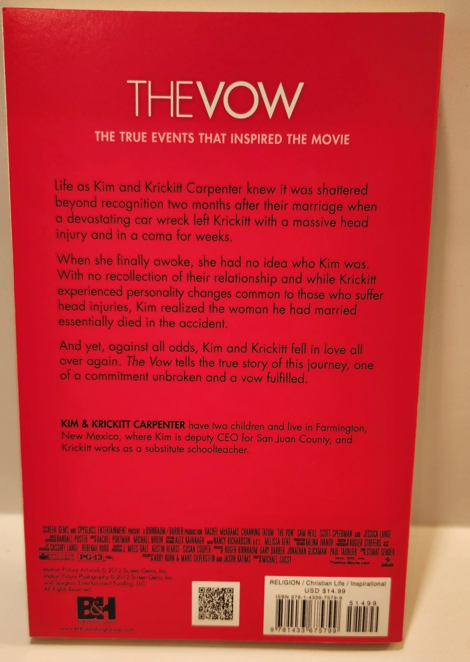 Paperback book. Based on a true story. Features Rachel McAdams and Channing Tatum. Written by Kim & Krickitt Carpenter with Dana Wilkerson.