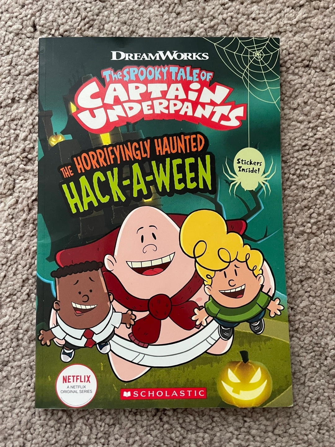 Scholastic book. DreamWorks Captain Underpants. Netflix original series. Stickers inside. Halloween-themed.