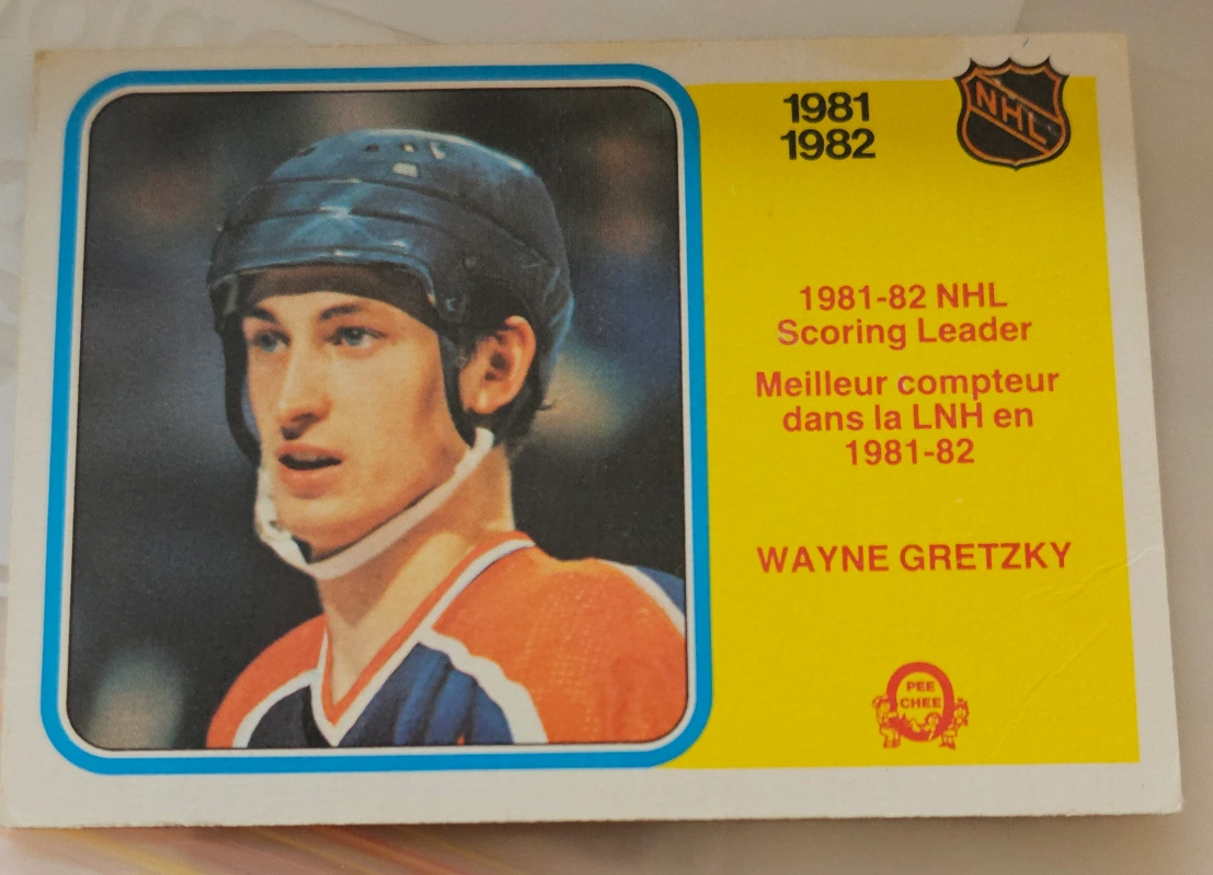 92Wayne Gretzky rookie card. 1981-82 NHL scoring leader. O-Pee-Chee brand. Part of a set showcasing top NHL scorers.
