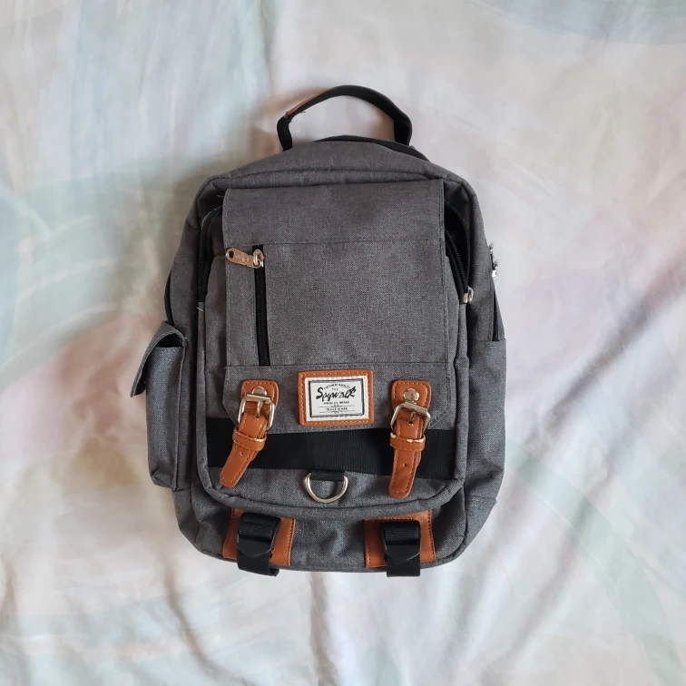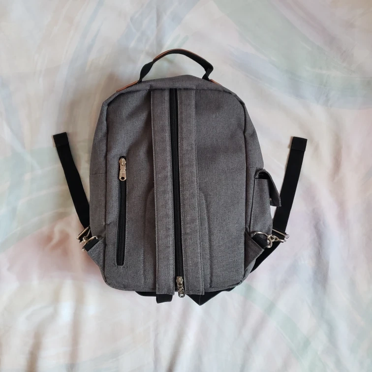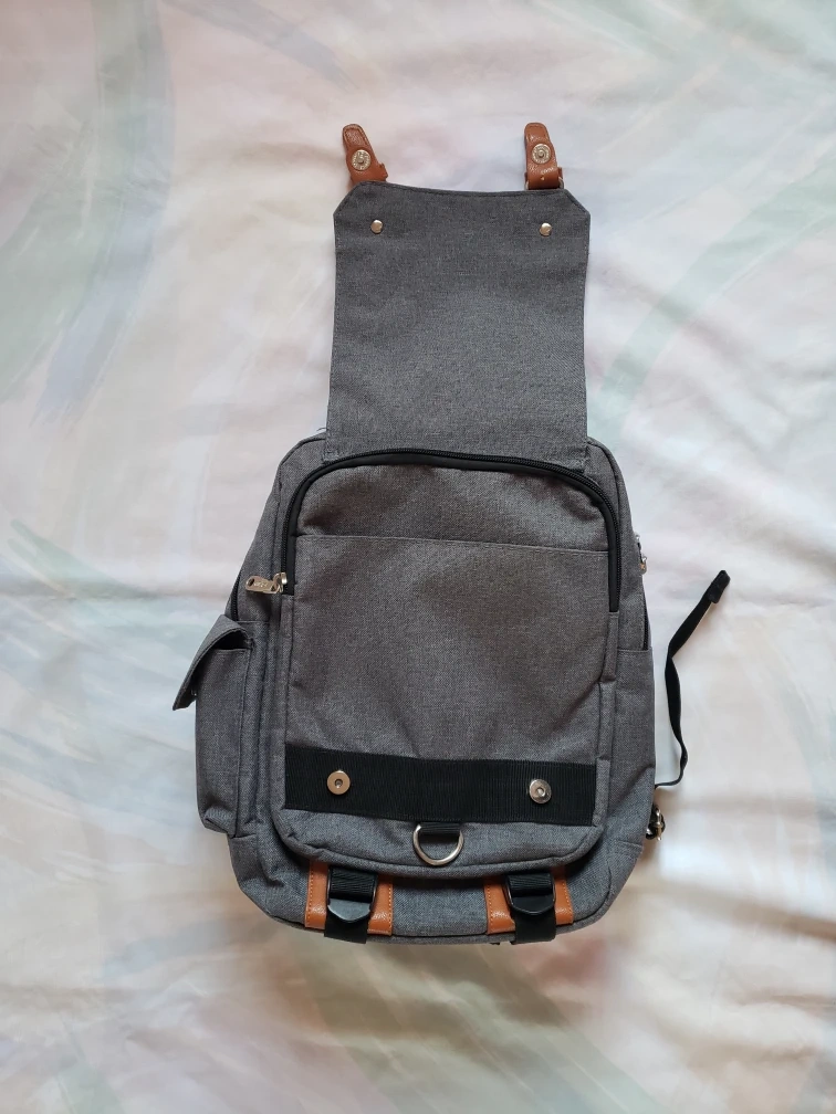 Backpack has multiple zippered & inner compartments, adjustable/detachable straps and can also be worn as a sling-type bag