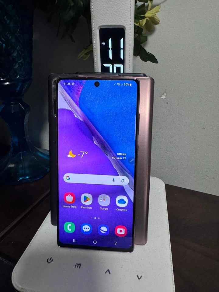 Samsung Galaxy Note 20 Ultra 5G (128GB) for sale at $350 CAD. Features a stunning 6.9” Dynamic AMOLED Display, super-fast 5G connectivity, and the iconic S Pen for productivity. Capture incredible photos with the pro-grade 108MP camera and enjoy 128GB of storage. The long-lasting battery powers your day. This phone delivers flagship performance. Available in Black & Mystic Bronze.