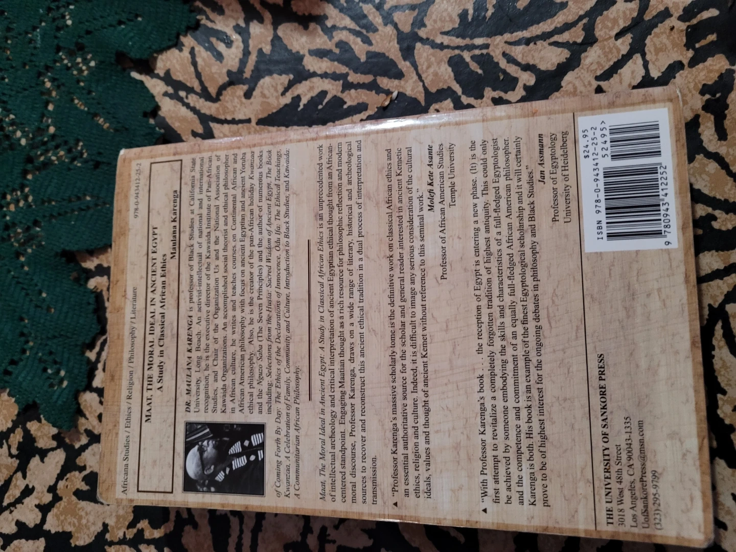 Selling "Maat The Moral Ideal in Ancient Egypt" by Maulana Karenga. It is a study in classical African ethics. If you're interested in African studies, religion, philosophy, or literature, this book is for you!