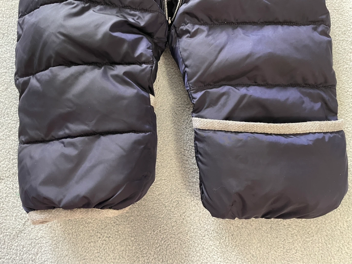 Warm puffer snowsuit with a removable fur-lined hood. Features a full zip front and a comfortable fit. Perfect for keeping your little one toasty during winter.