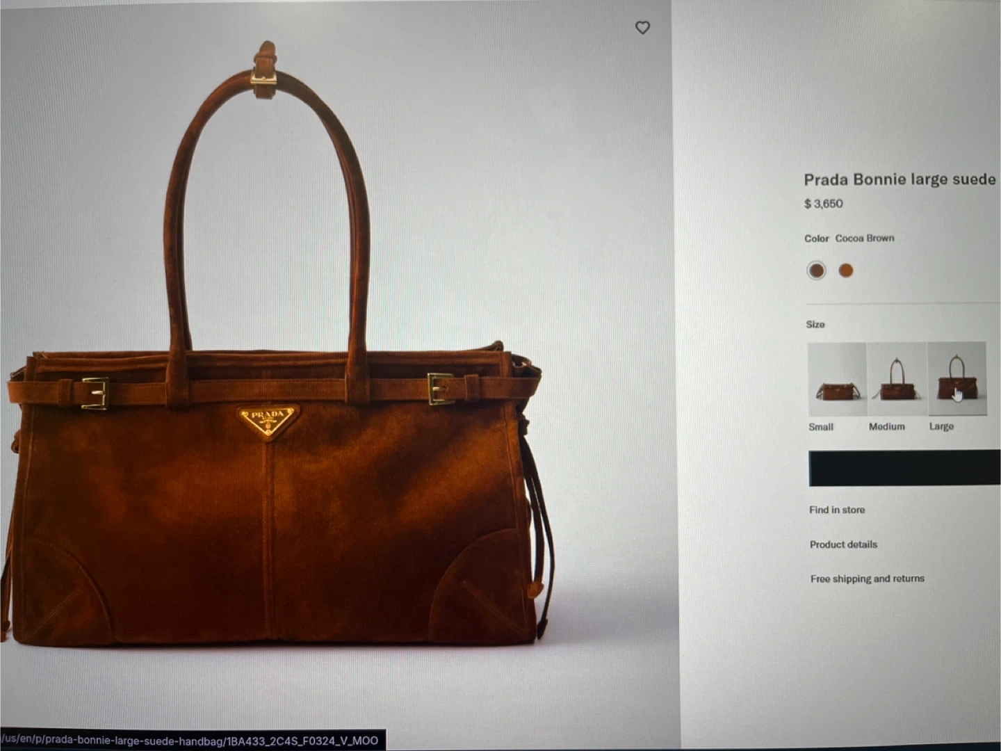 Prada Bonnie Large Suede Handbag Cocoa Brown