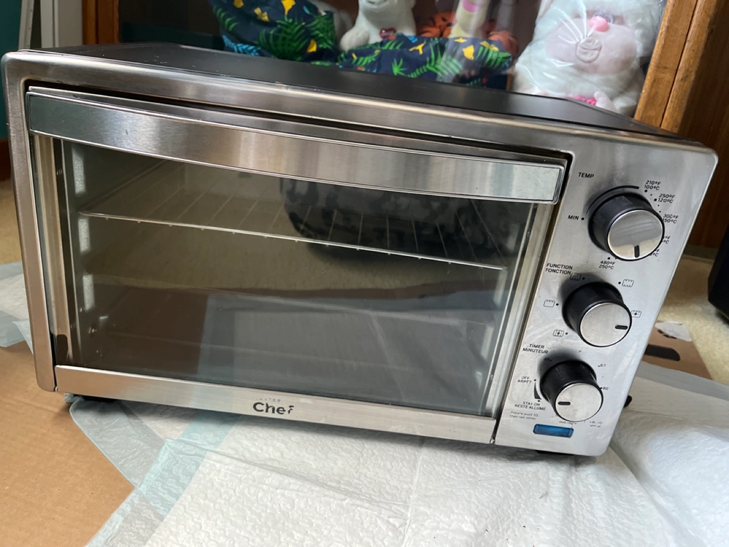 69Features Four stainless steel heating elements with Roast, Bake, Broil, and Convection functions 60-minute timer with stay-on, signal bell, and auto-off Heats up to 250˚C (480˚F) Cool touch handle for safety Enamel baking/broil tray Three rack positions for baking or broiling needs Power-on light Capacity: 6 Slice/19 Litre