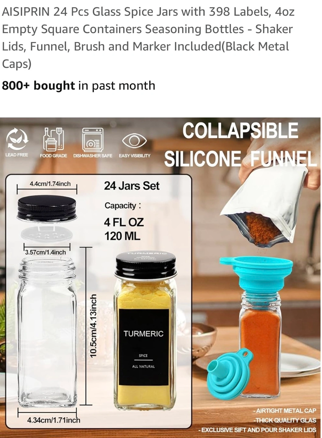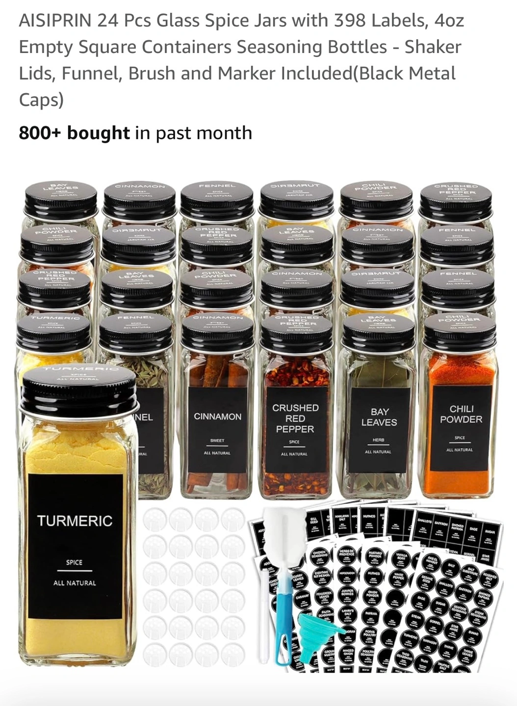 Selling a barely used AISIPRIN 24-piece glass spice jar set that I bought just a few months ago. Some jars have never been used, and the set includes all original accessories, including: