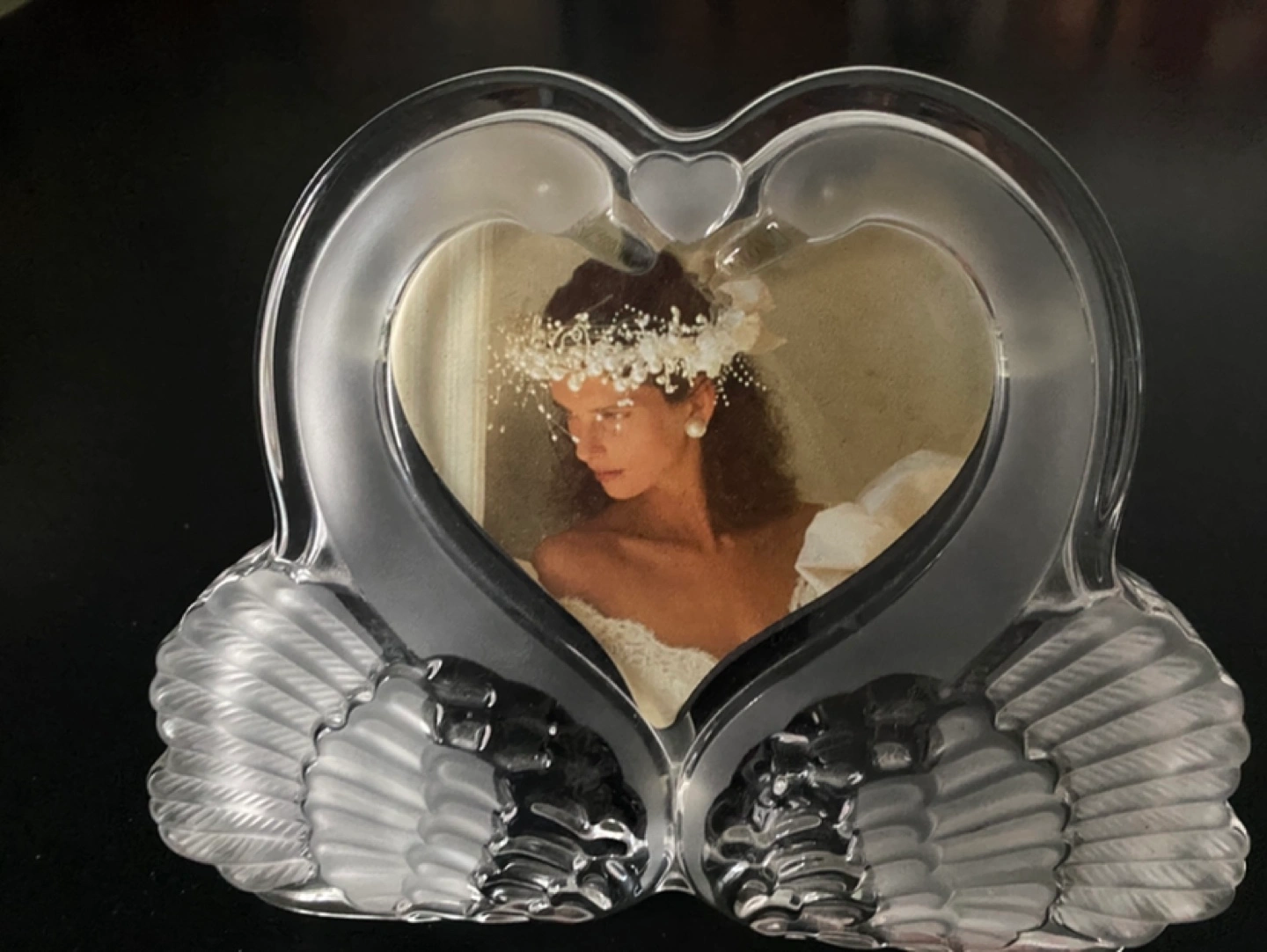 “Mikasa” Lead Crystal frosted heart wedding swan frame!