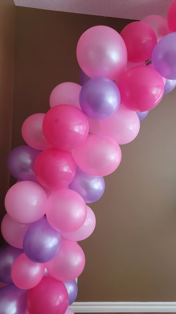 Beautiful balloons in shades of pink and purple. Ready to assemble and celebrate your kiddo birthday.