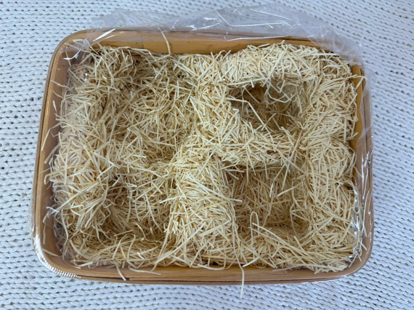 Small woven basket. Perfect for gifting. Includes ribbon and shredded paper filler. New, never used.