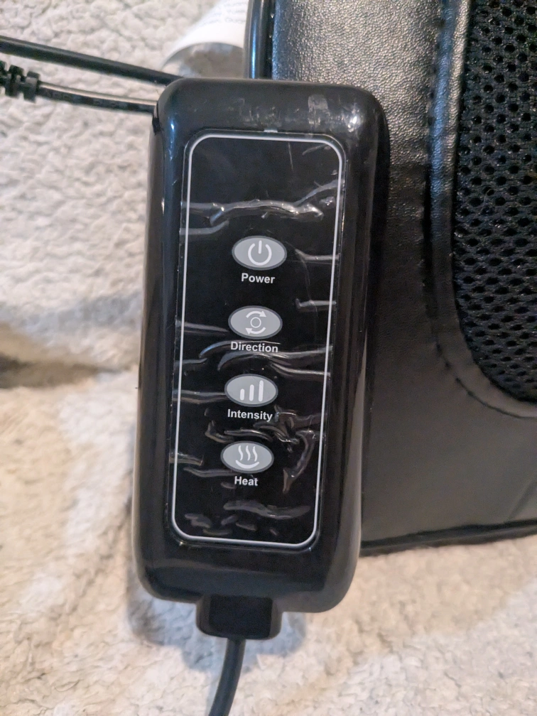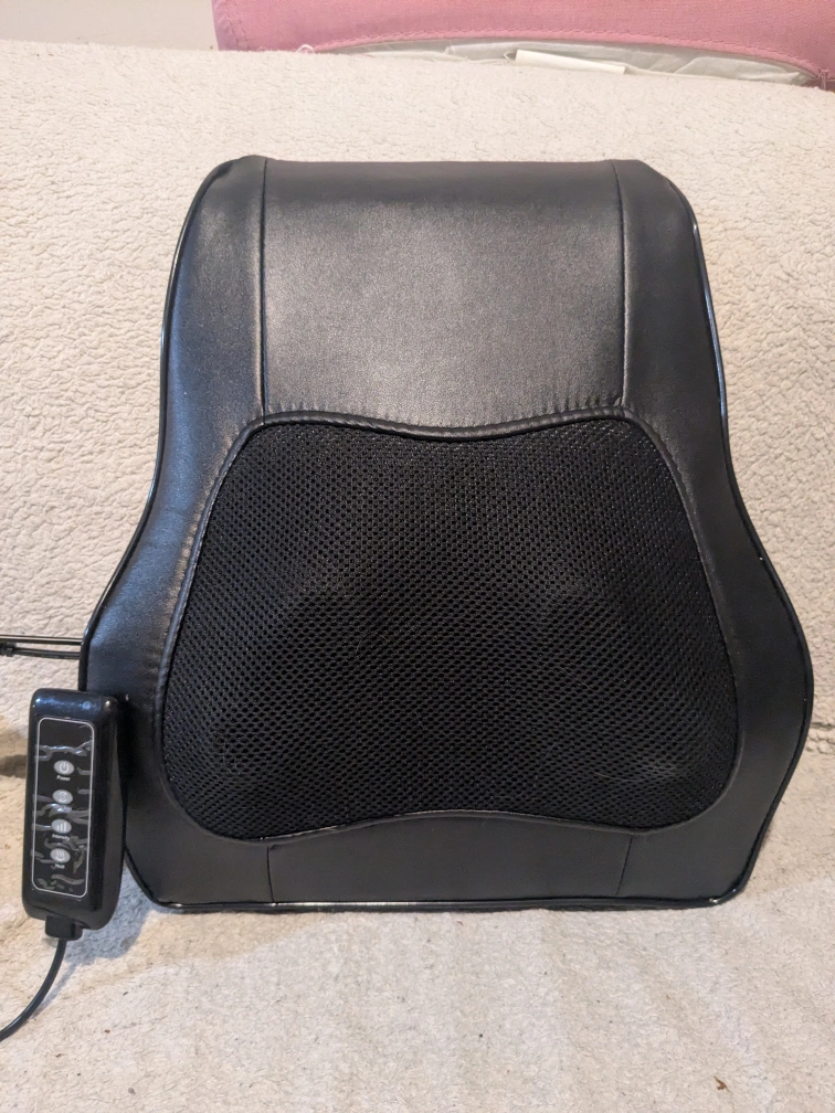 Very good condition, not used very much at all. Three intensity settings, heat on/off, and reversible massage direction. Powers off automatically for safety after 15 minutes or so without input. Powered via cable to wall outlet, not batteries. Would love to keep it, but I am moving long distance. Pickup location near Church & Carlton.