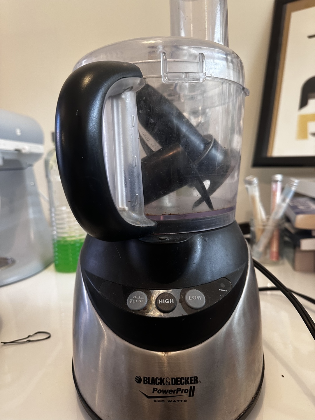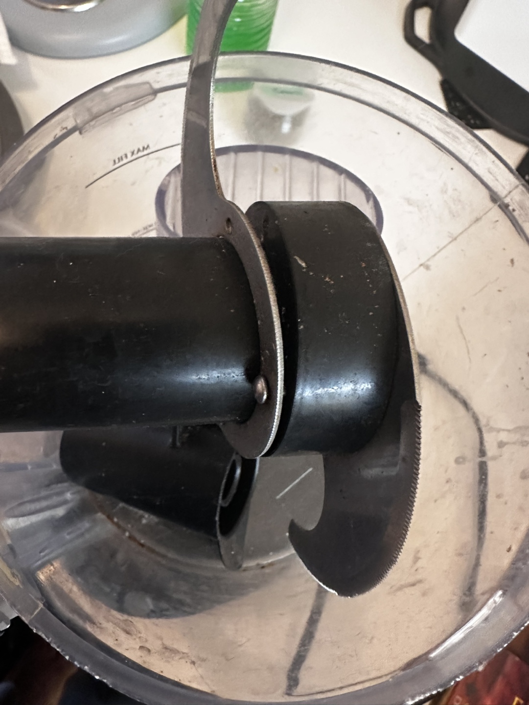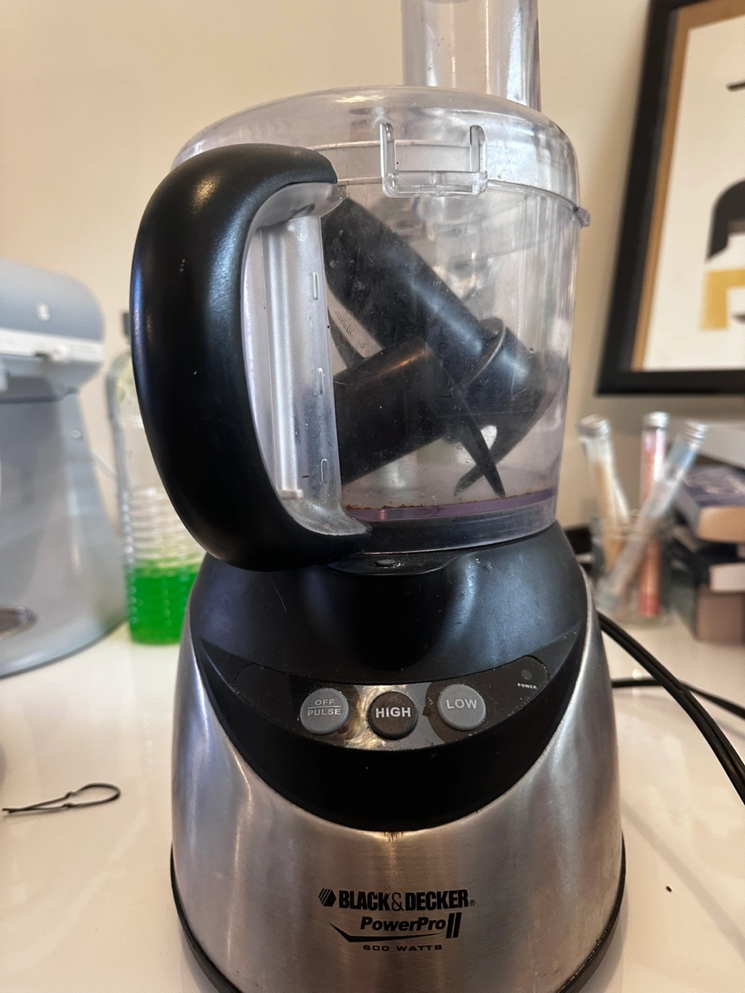 Black & Decker PowerPro food chopper. 800 Includes blades. This was passed on to me as it is. It needs a cleaning. I have never used it because I noticed the lose bolts on the blade (pic2), and that made me nervous. I imagine that someone handy can fix it. As far as I know, it works just fine.
