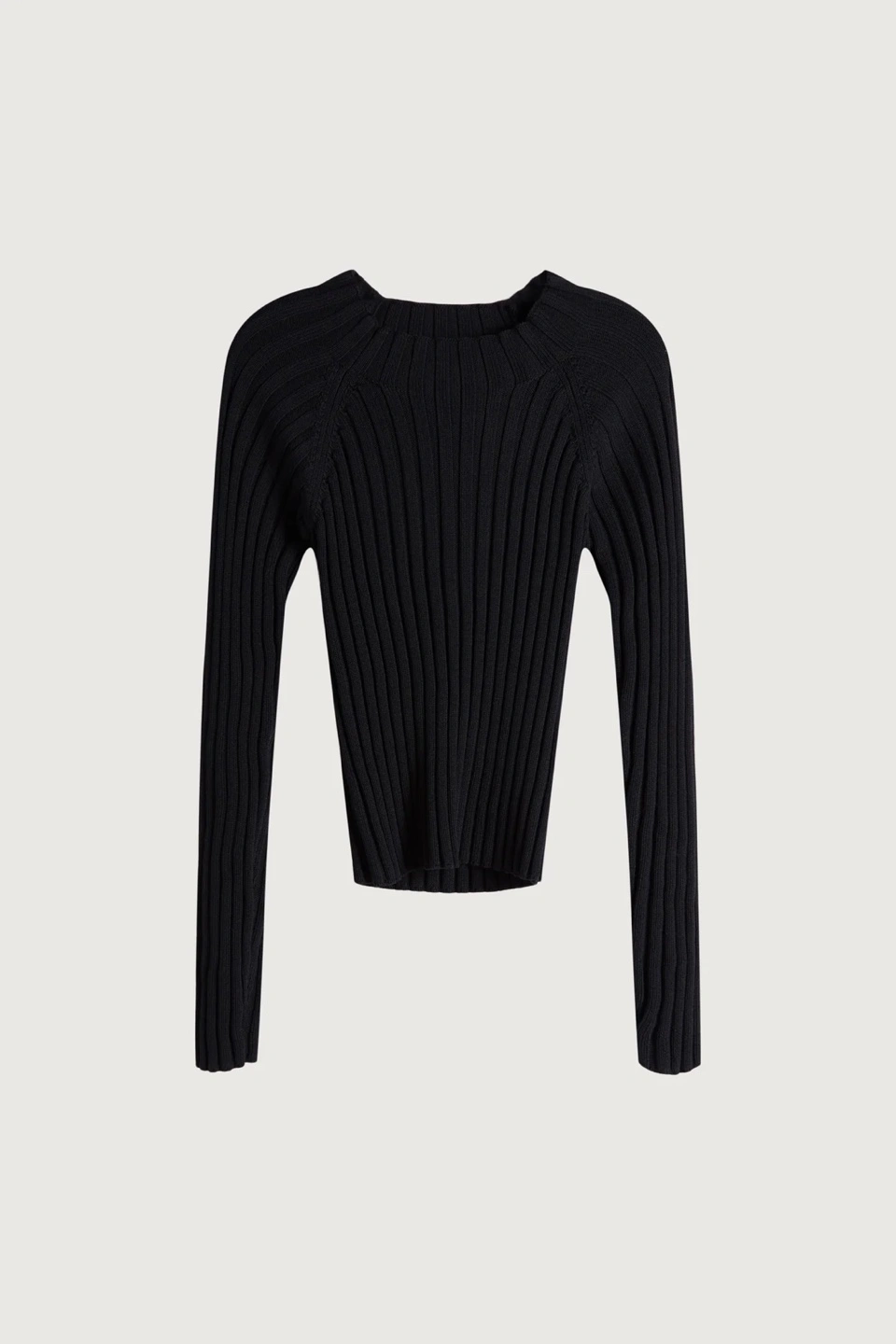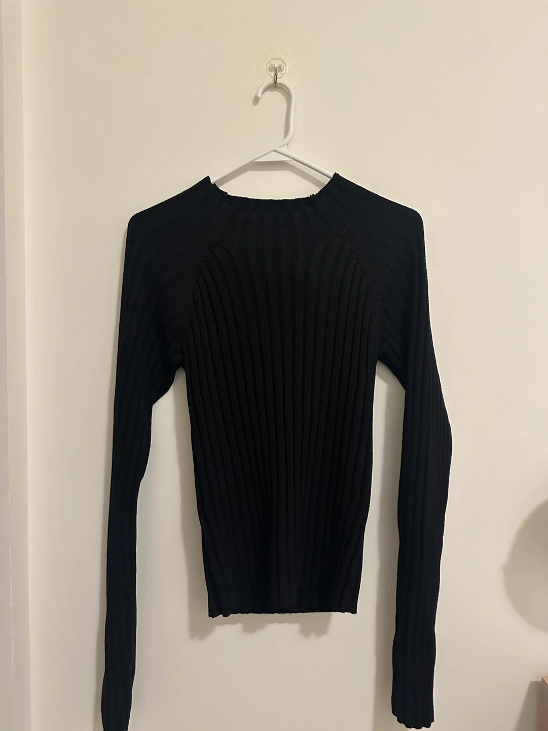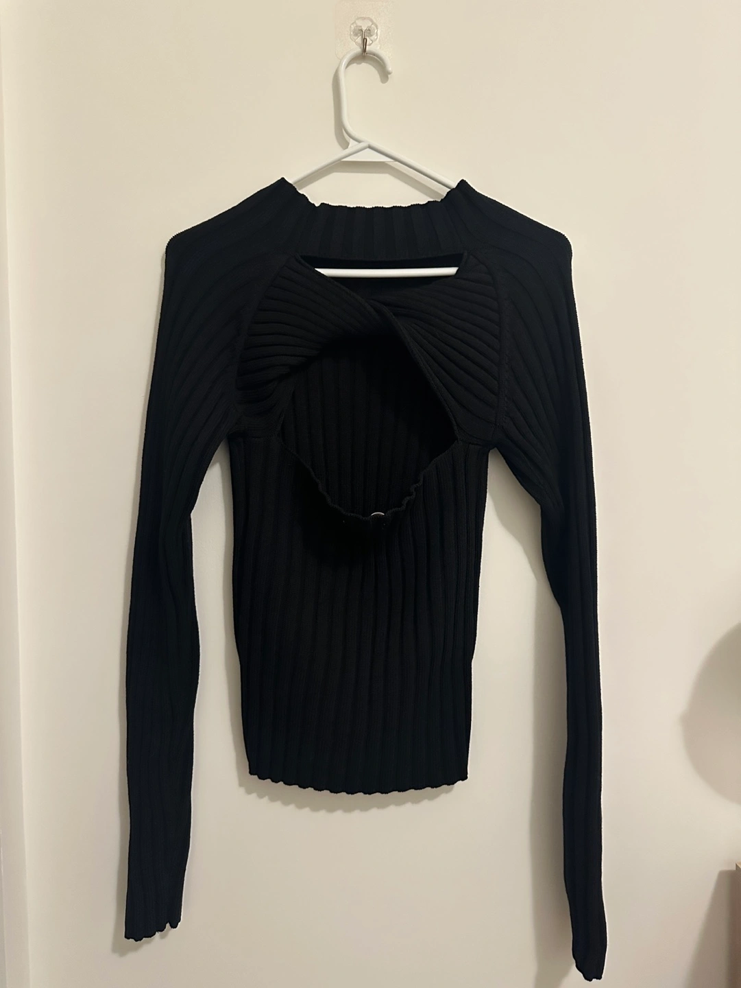 Long sleeve, ribbed knit sweater. Black colour. Cut-out detail at the back. Close-fitting. Excellent condition - never worn.