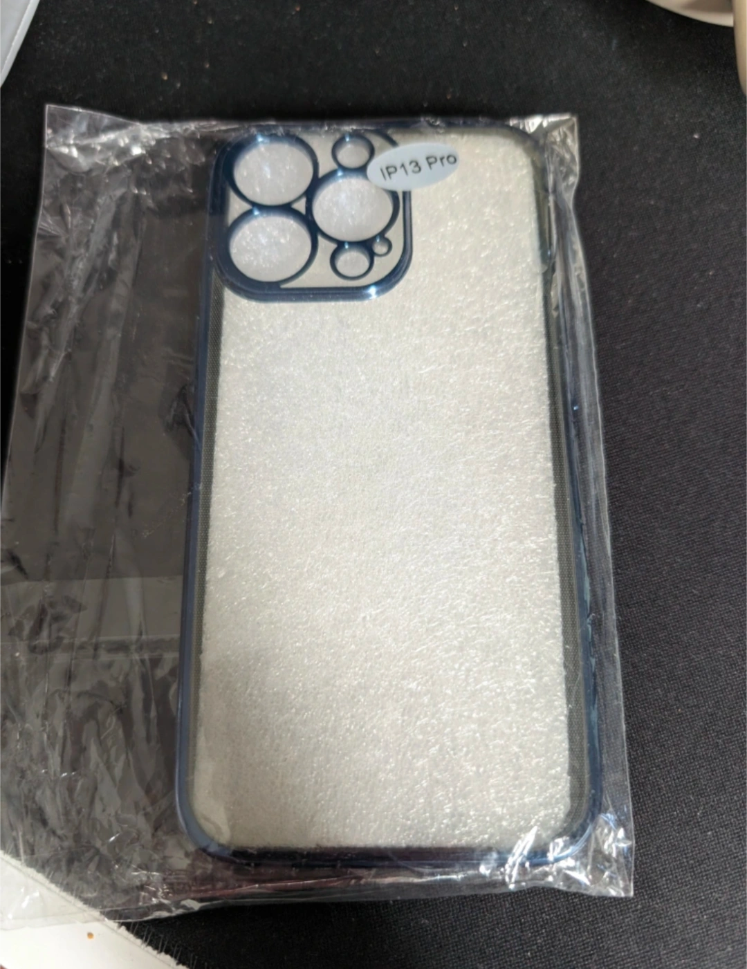 New iPhone 13 Pro phone case. Clear case with a dark blue bumper. Packaged and sealed. #freecycle