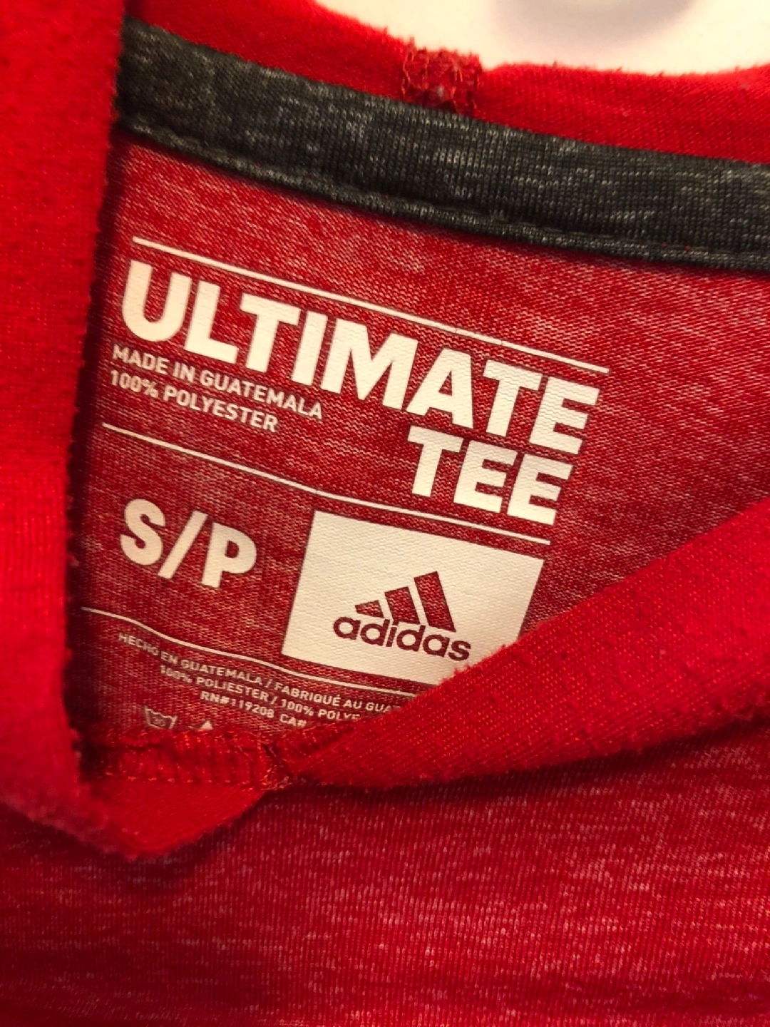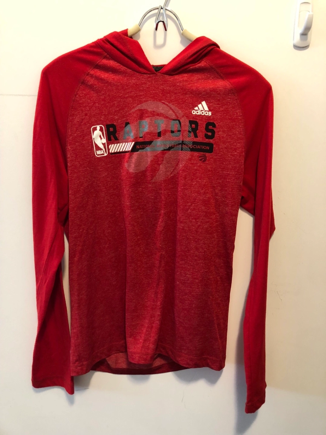 Red Adidas Raptors hoodie. Long sleeves. Small size. 100% polyester. Ultimate Tee.