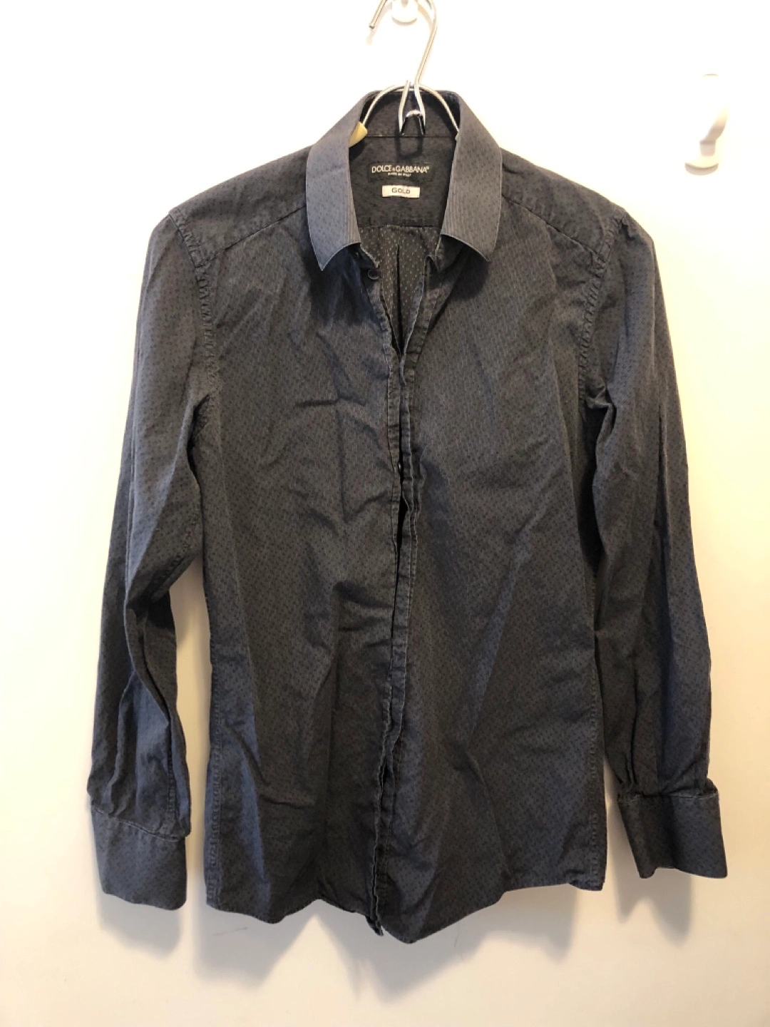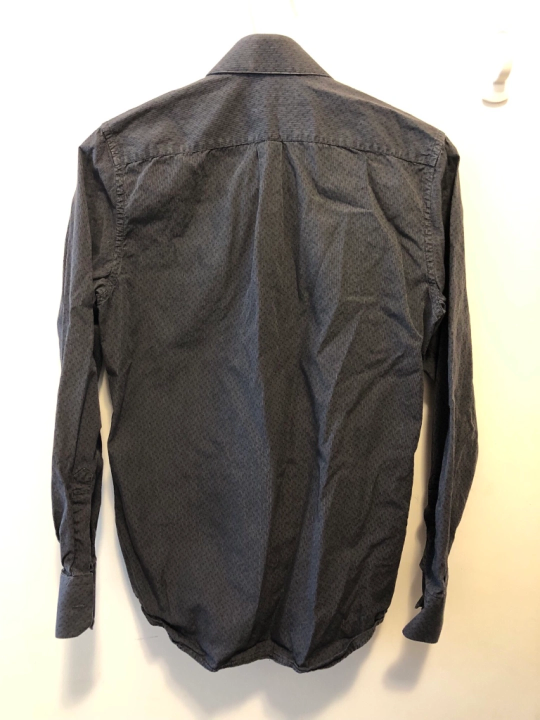 Long sleeve button up. Size Gold. Dark grey with subtle pattern. Made in Italy.