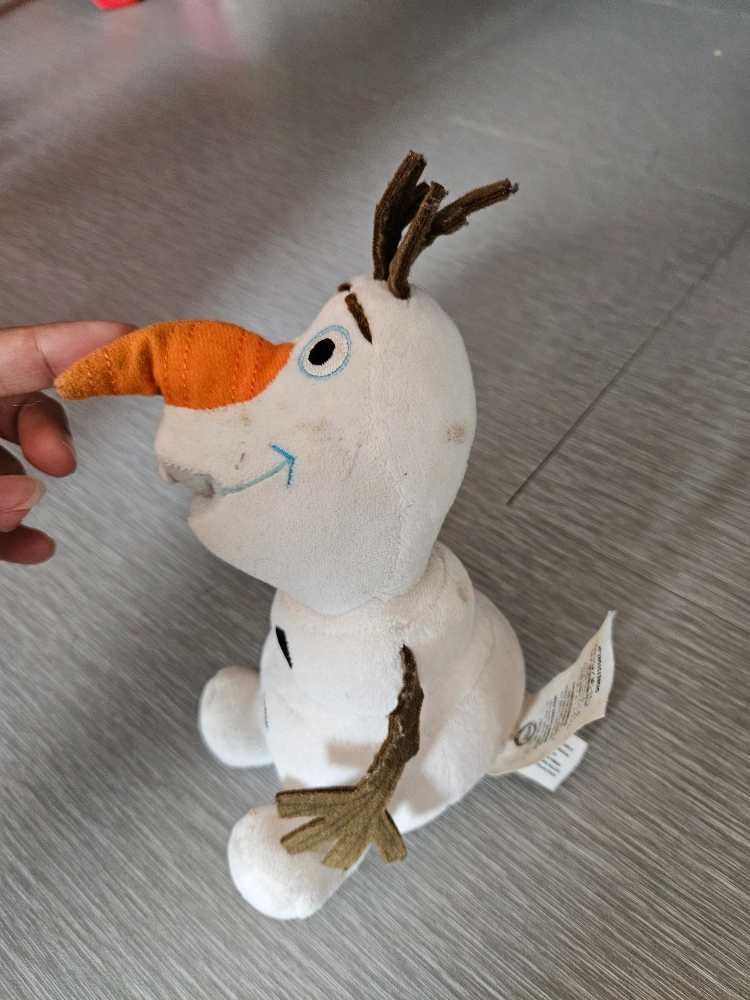 Adorable Olaf plush. Small, soft, cuddly. Perfect for Frozen fans. Shows some minor discoloration.