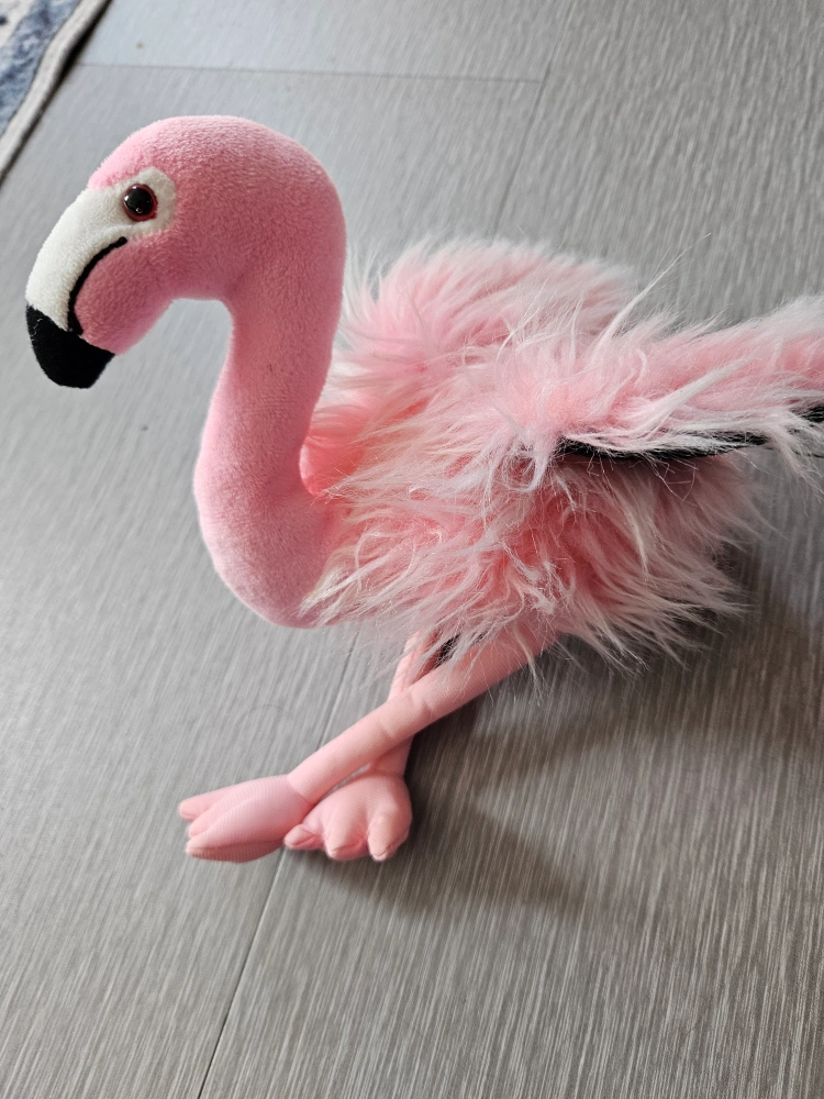 Adorable pink flamingo plush toy. Soft and fluffy. Great for kids or collectors.