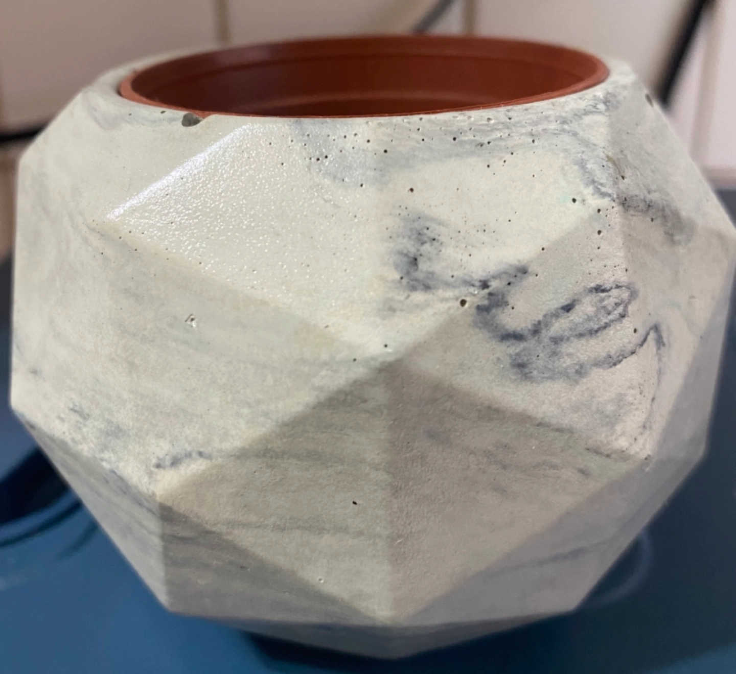 771Unique concrete planter. Modern design. Good for small plants or succulents. Grey and white marbling. Only available for pick up