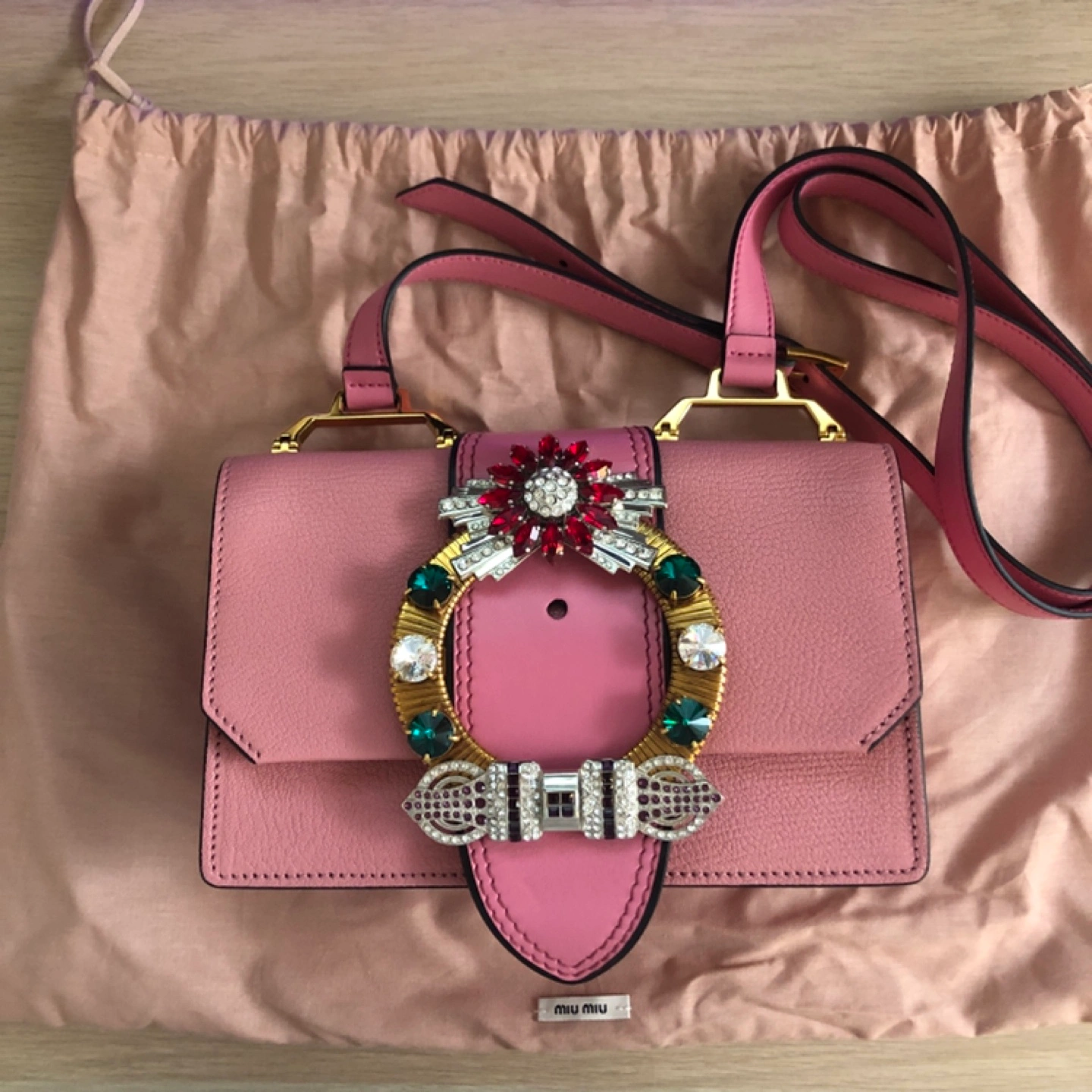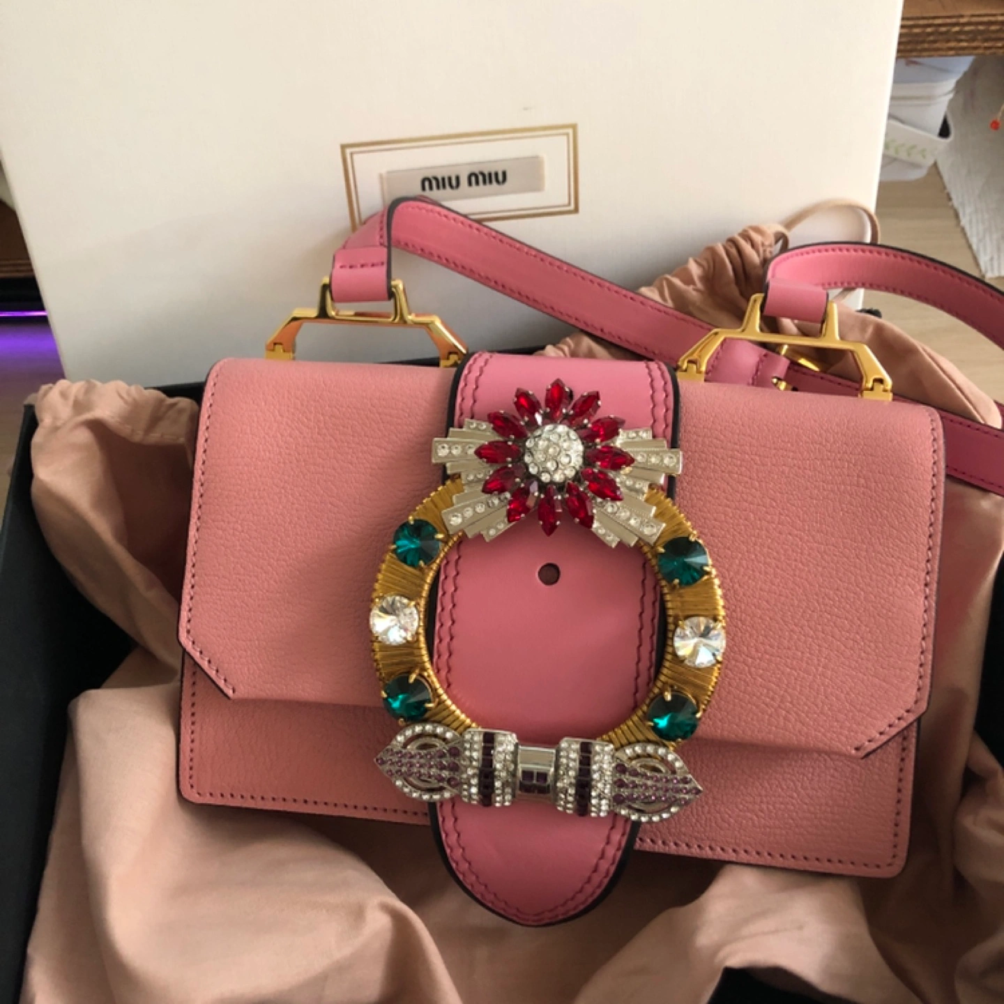 Authentic Miu Miu Pink Crystal Embellished Shoulder Bag