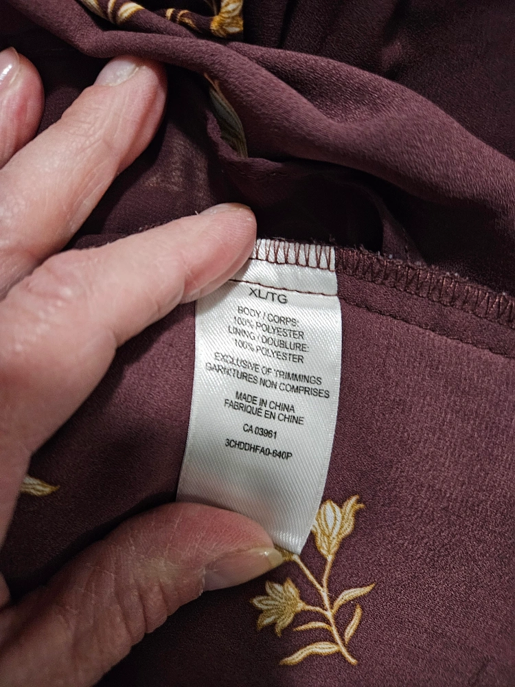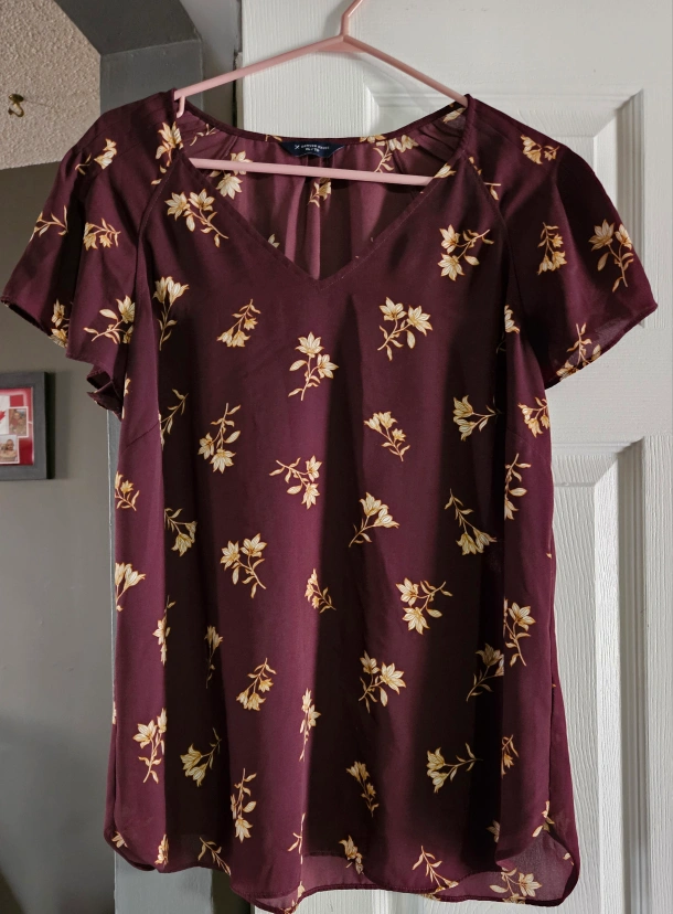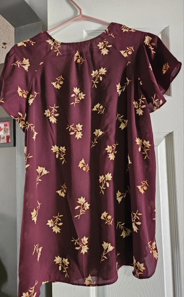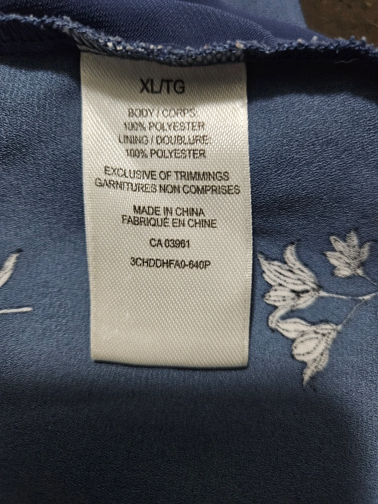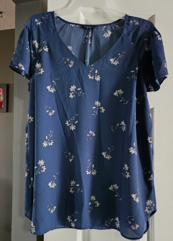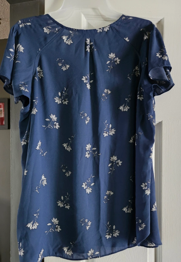 Women's XL top. Blue floral print. Short sleeves. V-neck. Lightweight material. Excellent condition. Non smoker. $5 each.