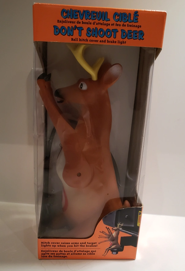 Fun deer-shaped hitch cover. Lights up when you hit the brakes. Easy installation. Includes instructions.