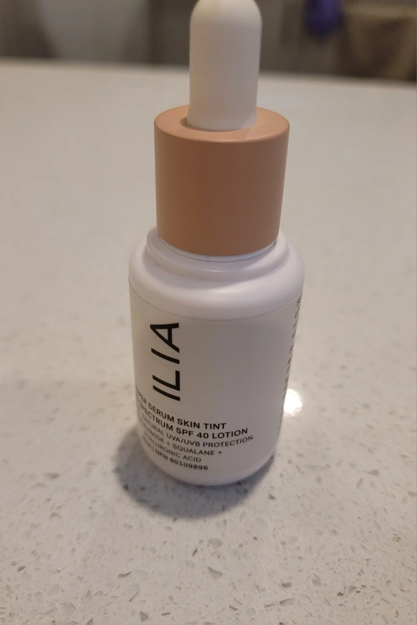 Used for a couple of days. ILIA Super Serum Skin Tint SPF 40. Shade Balos ST3. Very light with neutral cool undertones. Radiant finish.