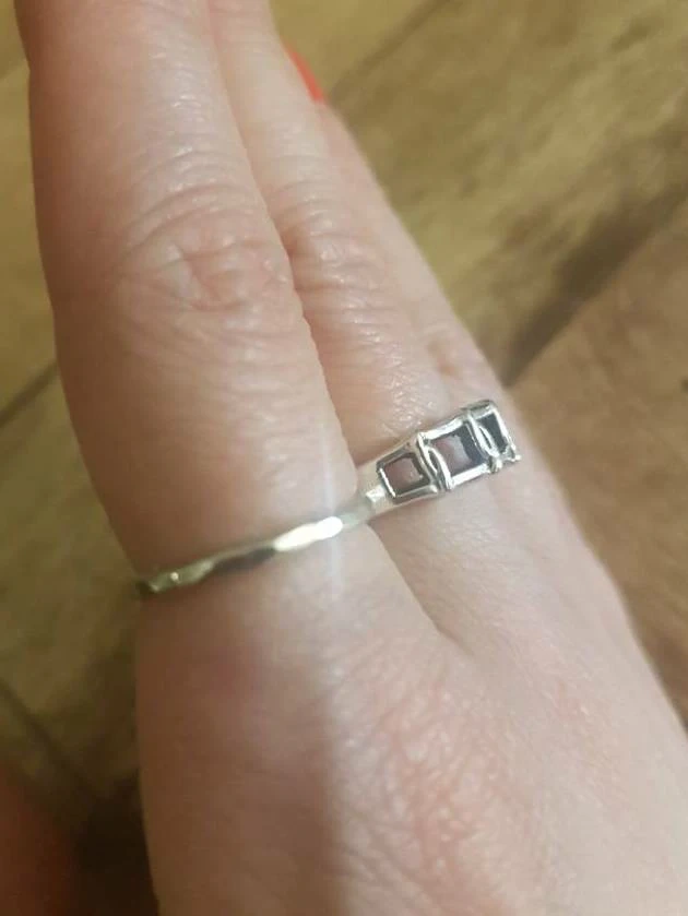 Unique, handcrafted 925 sterling silver ring. Features a raised, link design. Comes in a black gift box.
