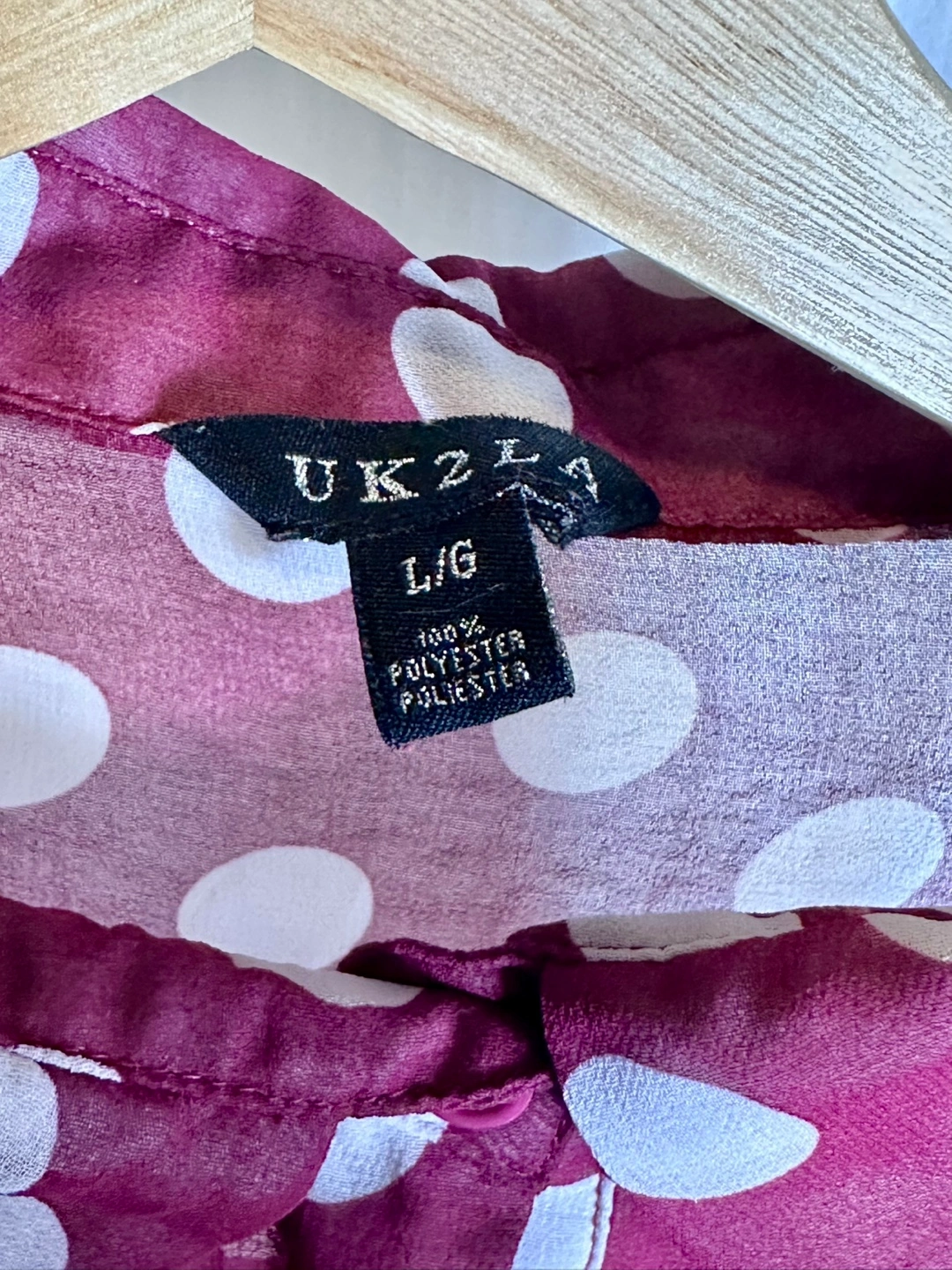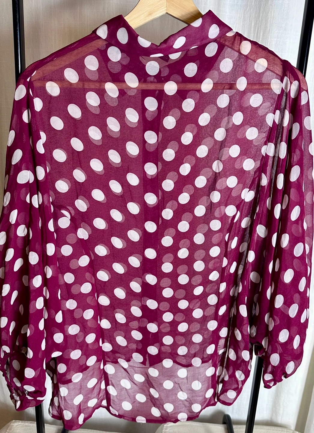 UK2LA Maroon Polka Dot Blouse, Size Large