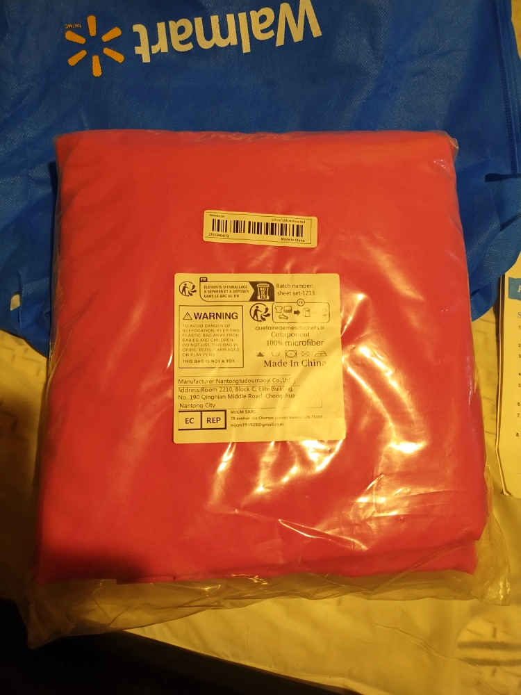 New in package. Pink microfibre sheet set. 100% microfibre. Made in China. Includes flat sheet, fitted sheet, and pillowcases. size full/double.