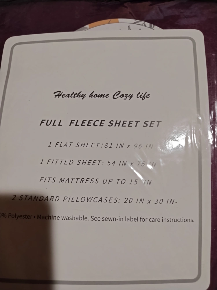 Full size fleece sheet set. Includes one flat sheet, one fitted sheet, and two pillowcases. Purple. 100% polyester. Machine washable. New with tags.
