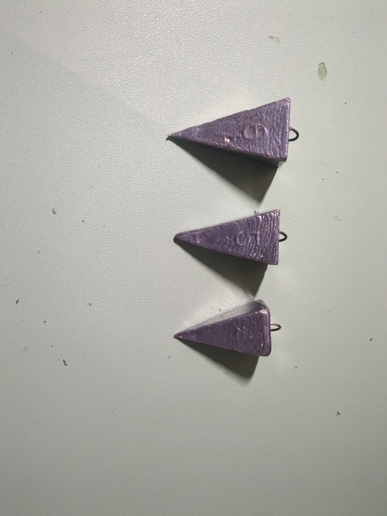 Three lead pyramid sinkers. Suitable for fishing. The image includes 4 oz, 5 oz, and 6 oz sinkers.